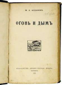 Алданов М. Огонь и дым. Париж: Франко-Русская печать, 1922.