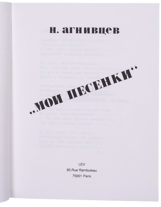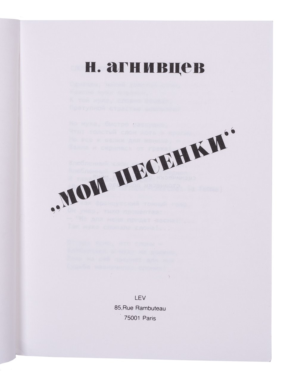 Агнивцев Н. «Мои песенки». Париж: ЛЕВ, 1980. 121, [4] с. 18х13,5 см.