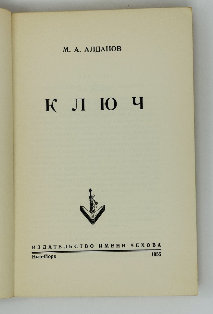 Алданов М. Ключ. Нью-Йорк: Издательство имени Чехова, 1955. 401, [2] с. 21,5х14 см.
