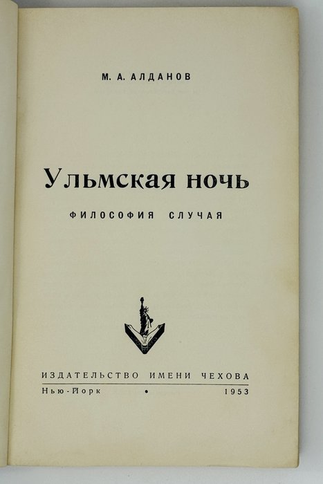 Алданов М. Ульмская ночь: Философия случая. Нью-Йорк: Издательство имени Чехова, 1953. 349 с. 21,5х14 см.
