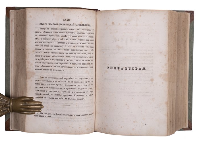 Во второй книге перед обедами помещено эссе “Взгляд на древнюю и современную гастрономию”, где пишет об особенностях античных пиров, французских аристократических обедов, русских пиршеств и аристократических обедов. За ним следует глава об особенностях обслуживания балов: утренних, вечерних, обыкновенных, английских, первоклассных, а также пасхального приема.