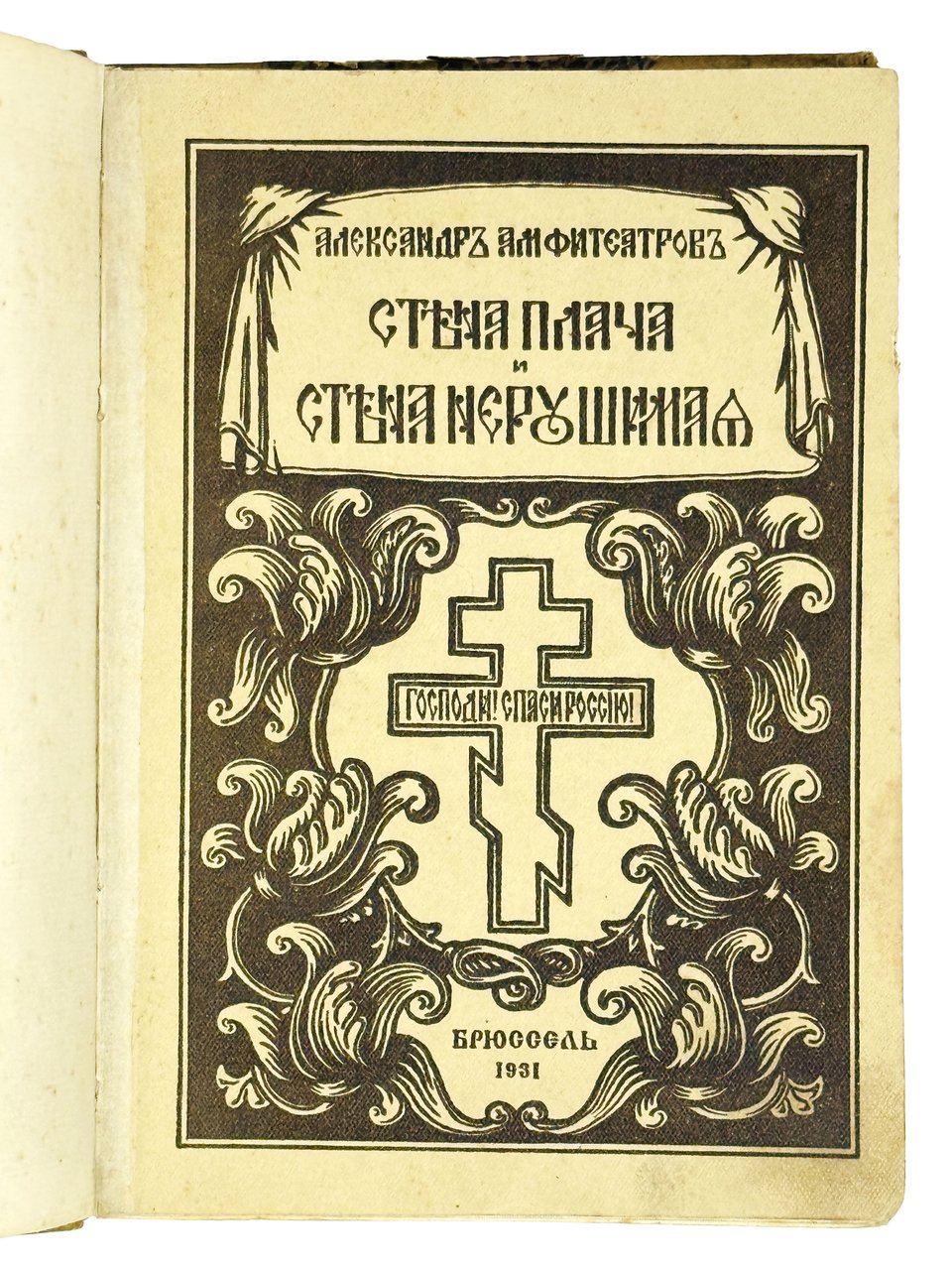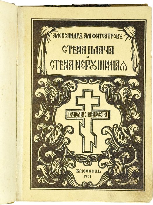 Амфитеатров А. Стена плача и стена нерушимая. Брюссель: Издание союза русских патриотов, 1931. 252, [4] с. 19,5х14 см.