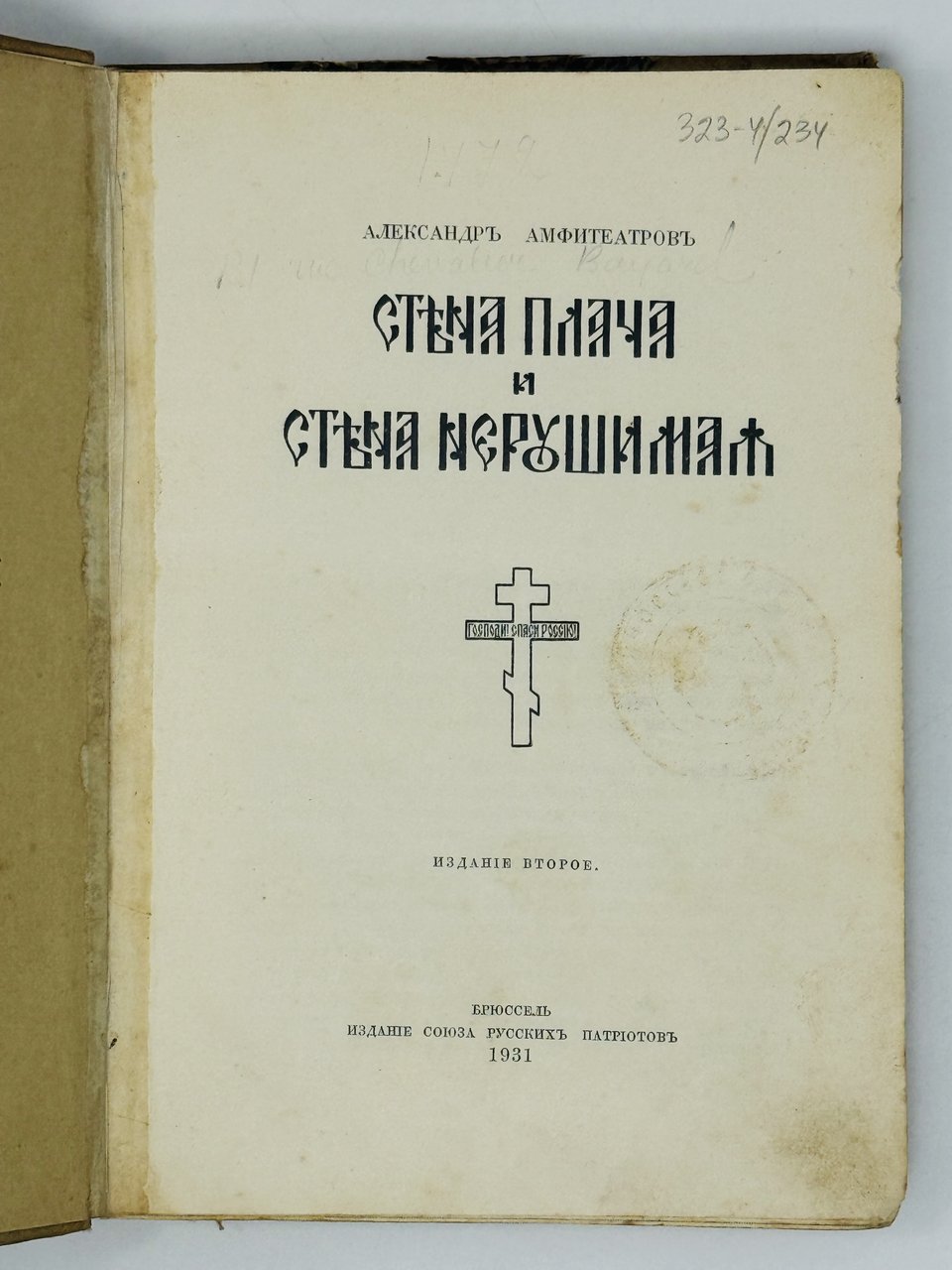 Амфитеатров А. Стена плача и стена нерушимая. Брюссель: Издание союза русских патриотов, 1931.