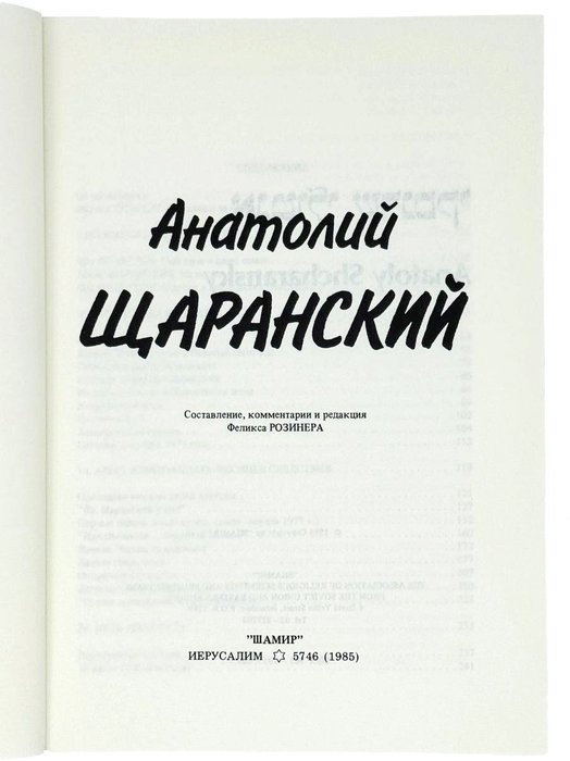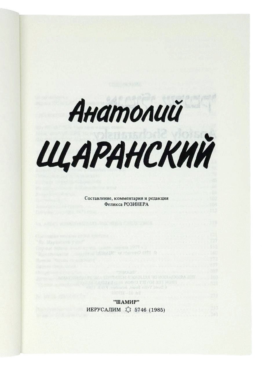 Анатолий Щаранский / Сост., комм. и ред. Ф. Розинер. Иерусалим: Шамир, 1985. 380 с.: ил. 23,5х16,5 см.