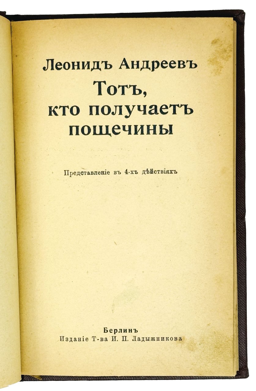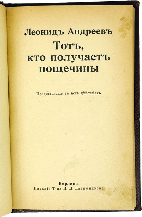 Андреев Л. Тот, кто получает пощечины: Представление в 4-х действиях. Берлин: Т-во И.П. Ладыжникова, [1916].