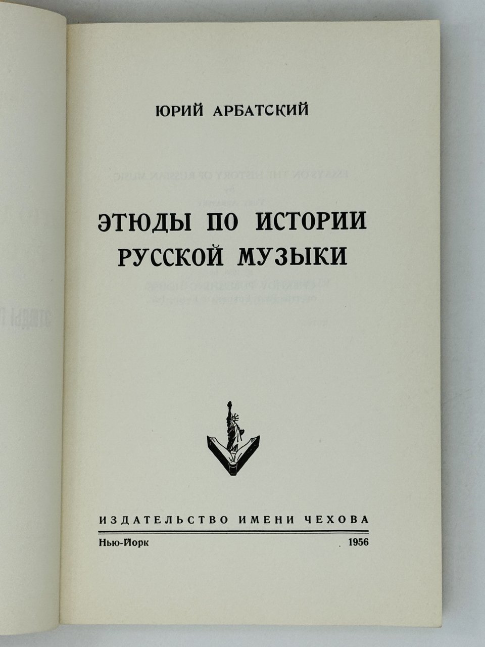 Арбатский Ю. Этюды по истории русской музыки. Нью-Йорк: Издательство имени Чехова, 1956. 414 с. 21,5х14 см.