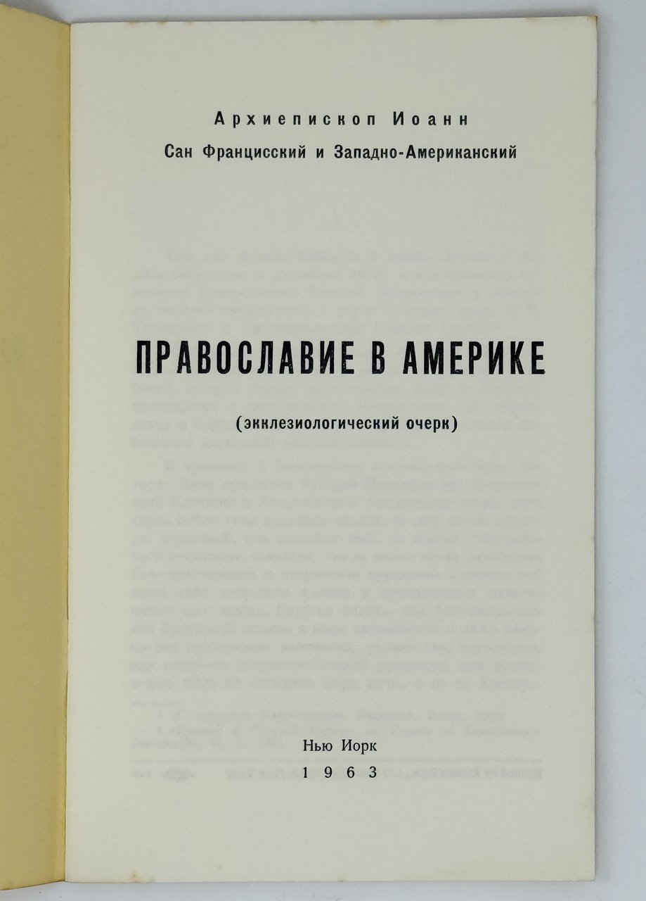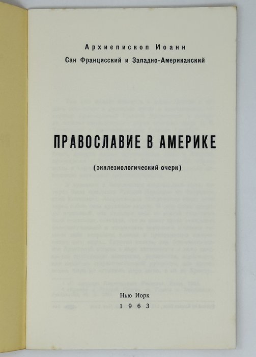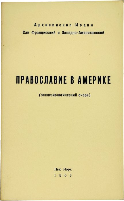 Архиепископ Иоанн (Шаховской). Православие в Америке: (Экклезиологический очерк). Нью-Йорк: 1963. 24 с. В шрифтовой издательской обложке.