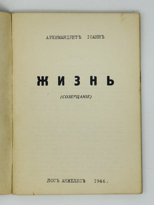 Архиепископ Иоанн (Шаховской). Жизнь: (Созерцание). Лос-Анжелес: 1946. 48 с. В шрифтовой издательской обложке.