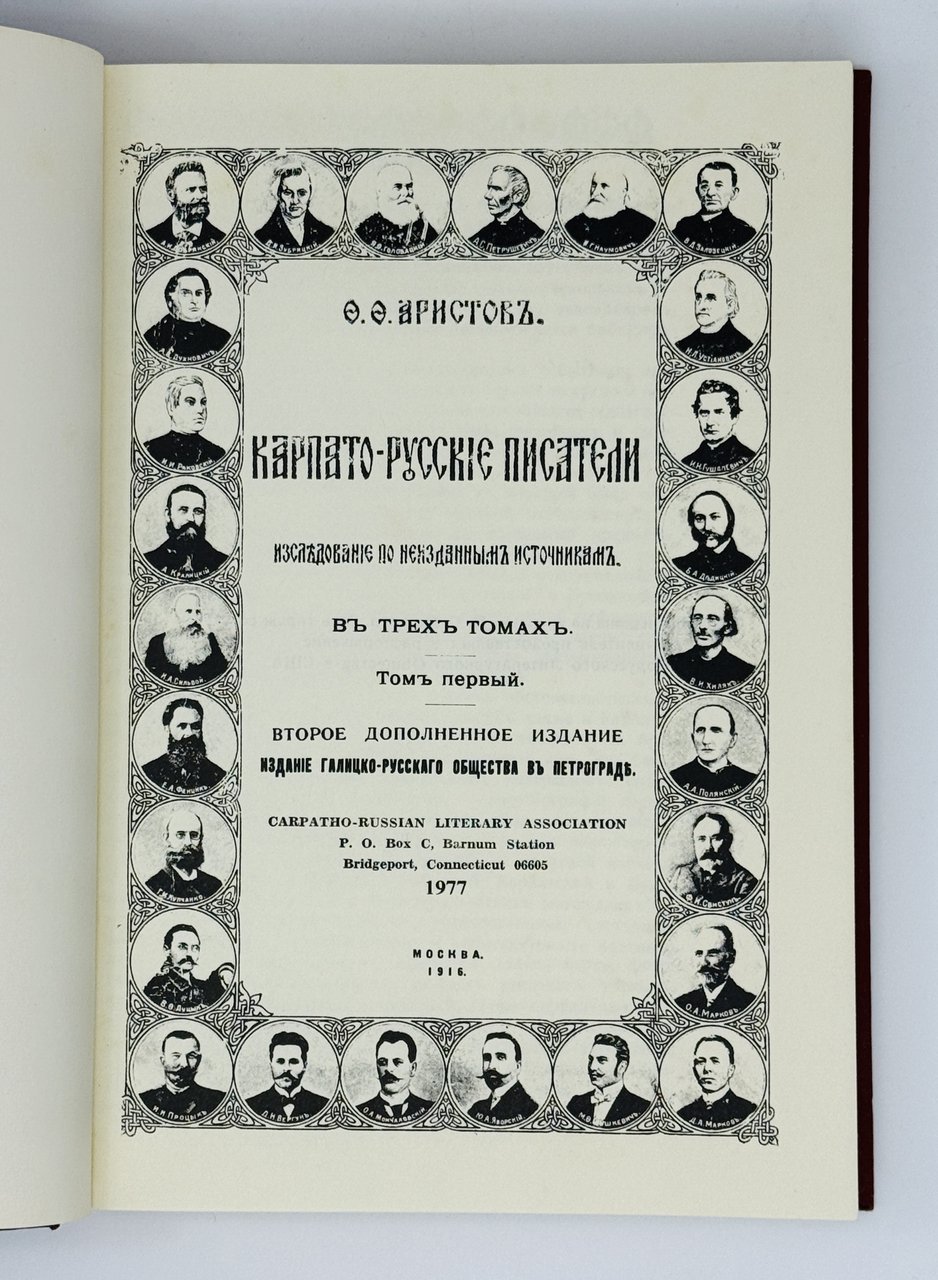 Аристов Ф.Ф. Карпато-русские писатели: Исследование по неизданным источникам. Bridgeport, CT: Carpatho-Russian Literary Association, 1977. 305 с.: ил. 24,5х17 см.
