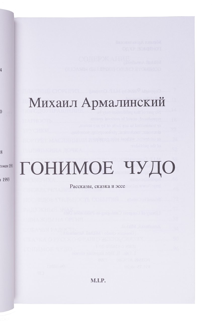 Армалинский М. Гонимое чудо. Миннеаполис: M.I.P. Company, 1996. 129 с. 25х17 см.