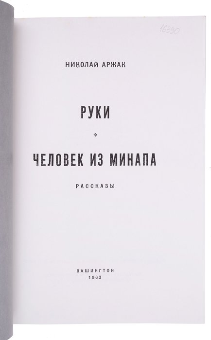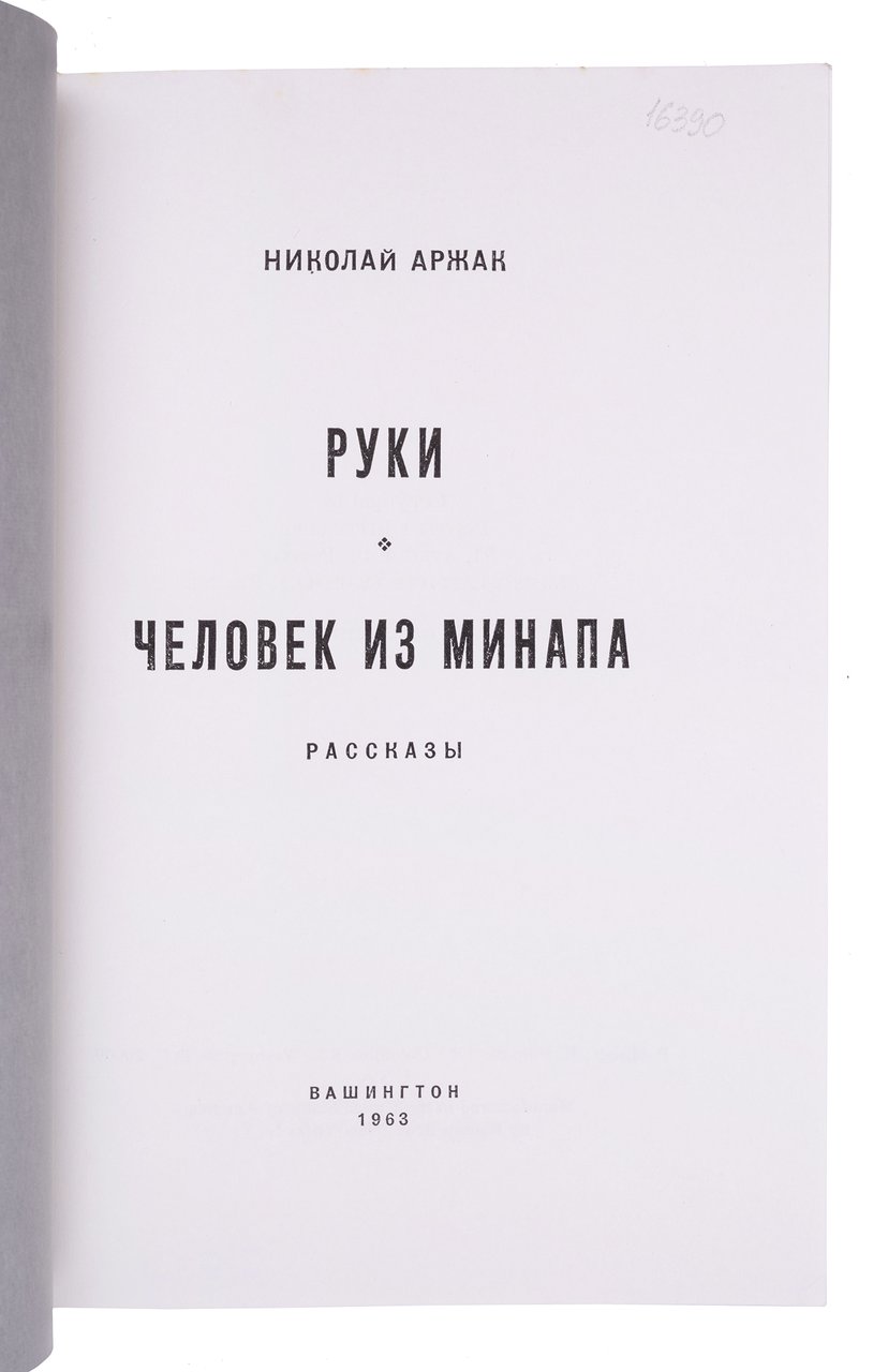 Аржак Н. Руки. Человек из МИНАПа: Рассказы. Вашингтон: Б.и., 1963. 40 с. 19,5х14 см.