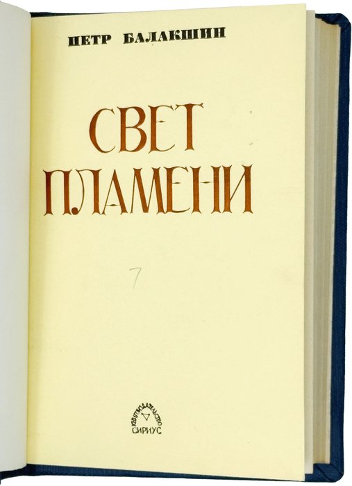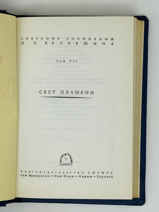 Балакшин П. Свет пламени. Сан-Франциско; Париж; Нью-Йорк: Сириус, 1977. 336 с. 18х12,5 см.