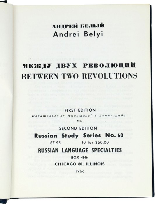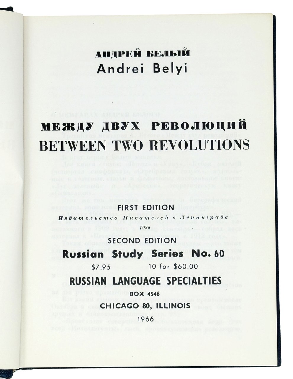 Белый А. Между двух революций. Чикаго: Russian Language Specialties, 1966. XXV, 408 с. 19х14 см.
