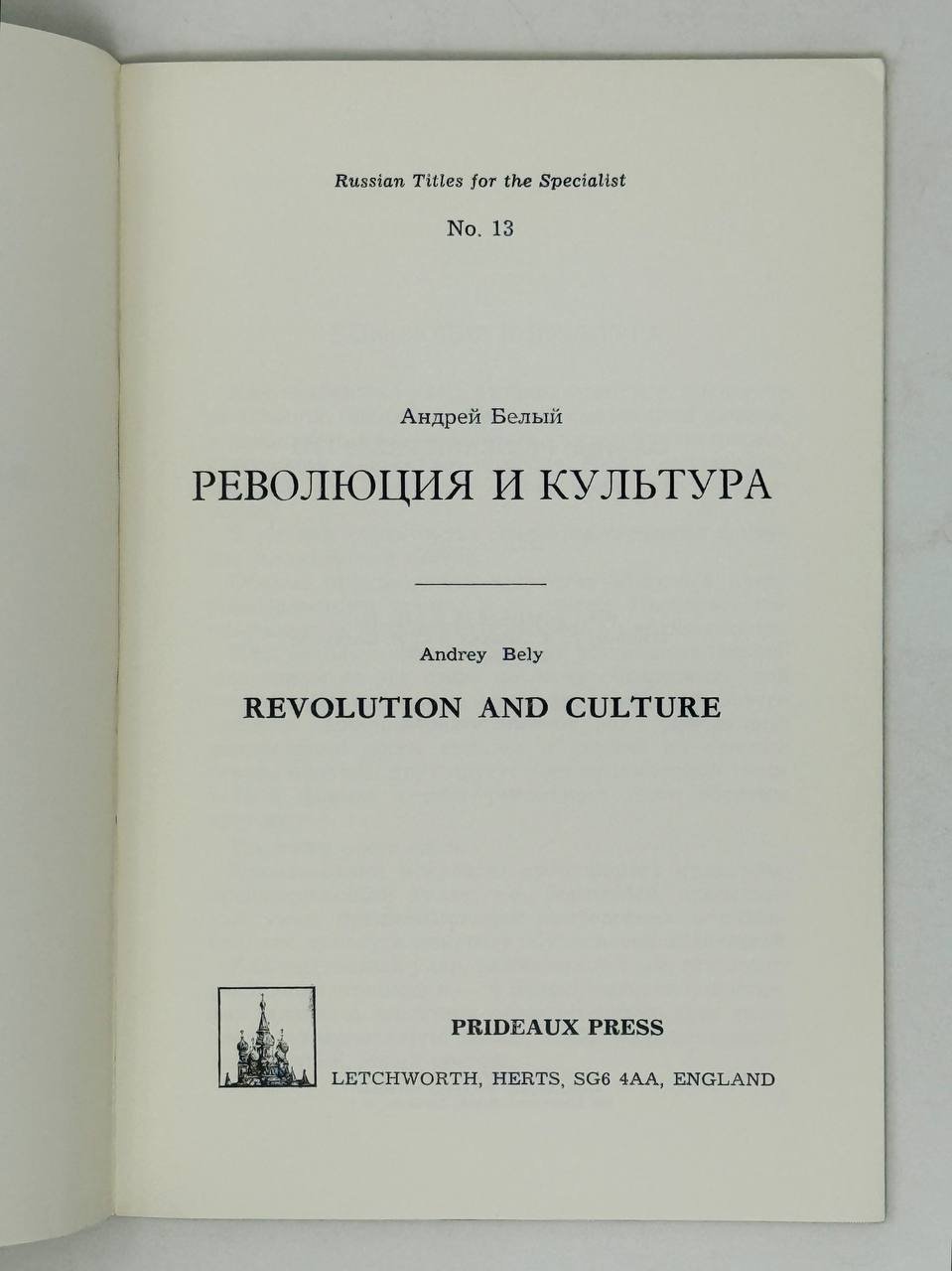 Белый А. Революция и культура. Letchworth: Prideaux Press, 1971. 28 с. 18,5х12,5 см.