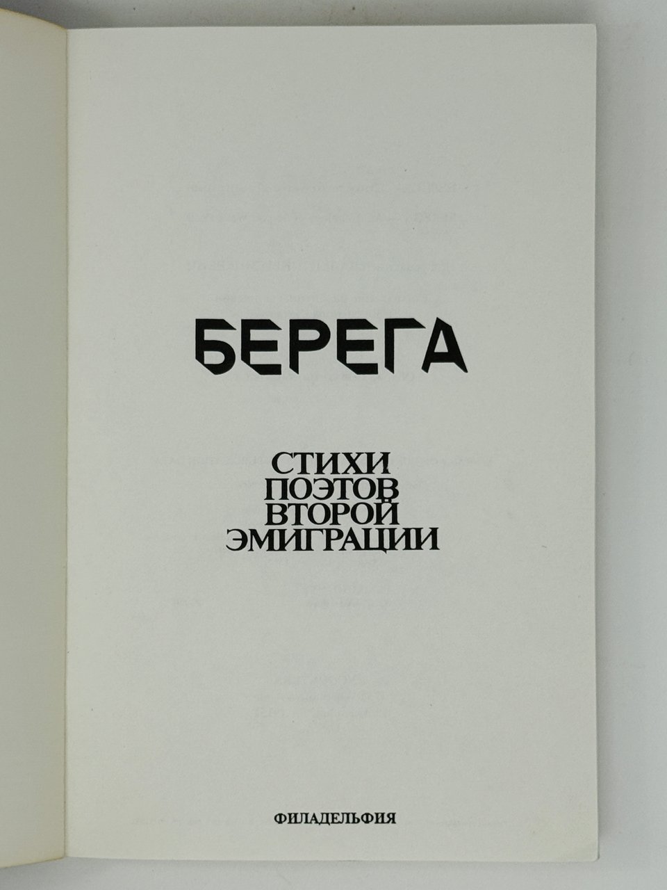 Берега: Стихи поэтов второй эмиграции. Филадельфия: Encounters, 1992. 290 с.: ил. 22х15 см.