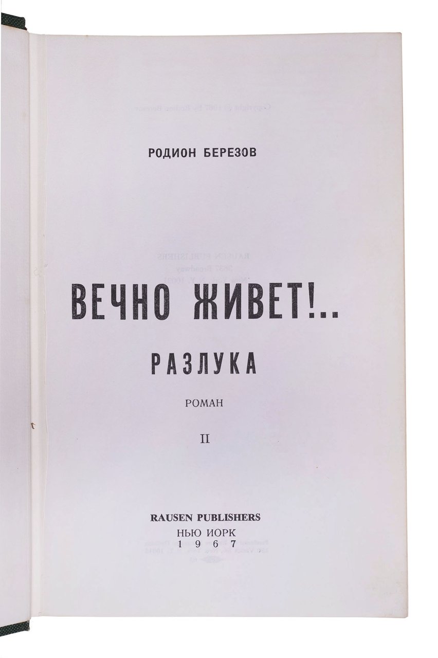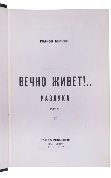 Березов Р. Вечно живет!.. Разлука: Роман. Ч. II. Нью-Йорк: Rausen Publishers, 1967. 351, [1] с. 22х14 см.