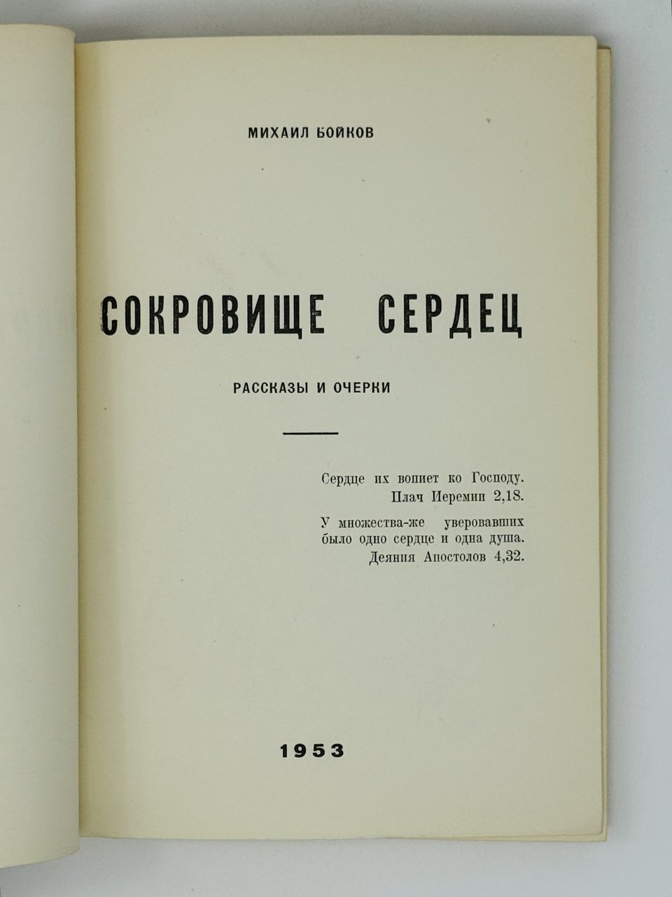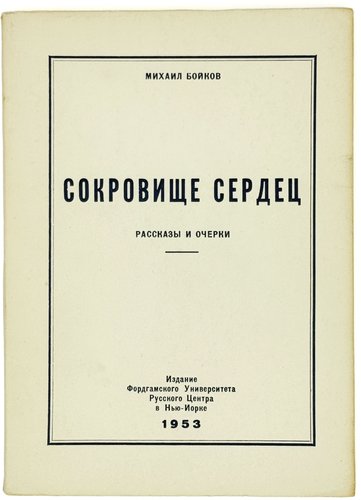 Бойков М. Сокровище сердец: Очерки и рассказы. Нью-Йорк; Буэнос-Айрес: Форлгамский Университет, 1953. 143 с. 19,5х14 см.