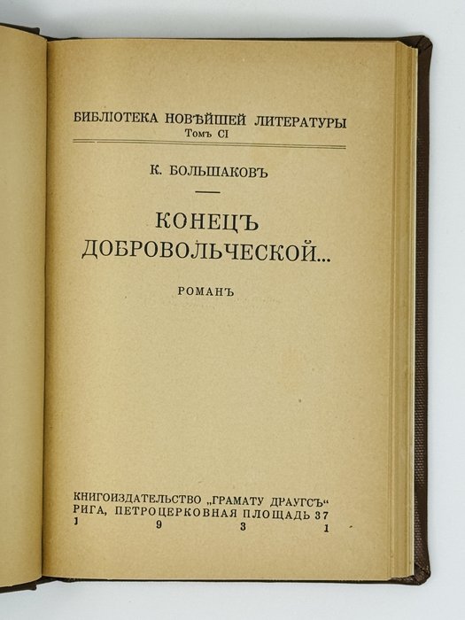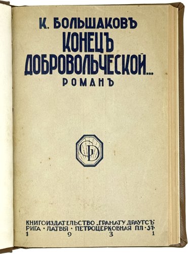 Большаков К. Конец Добровольческой...: Роман. Рига: Грамату Драугс, 1931. 222, [2] c. 20х14 см.