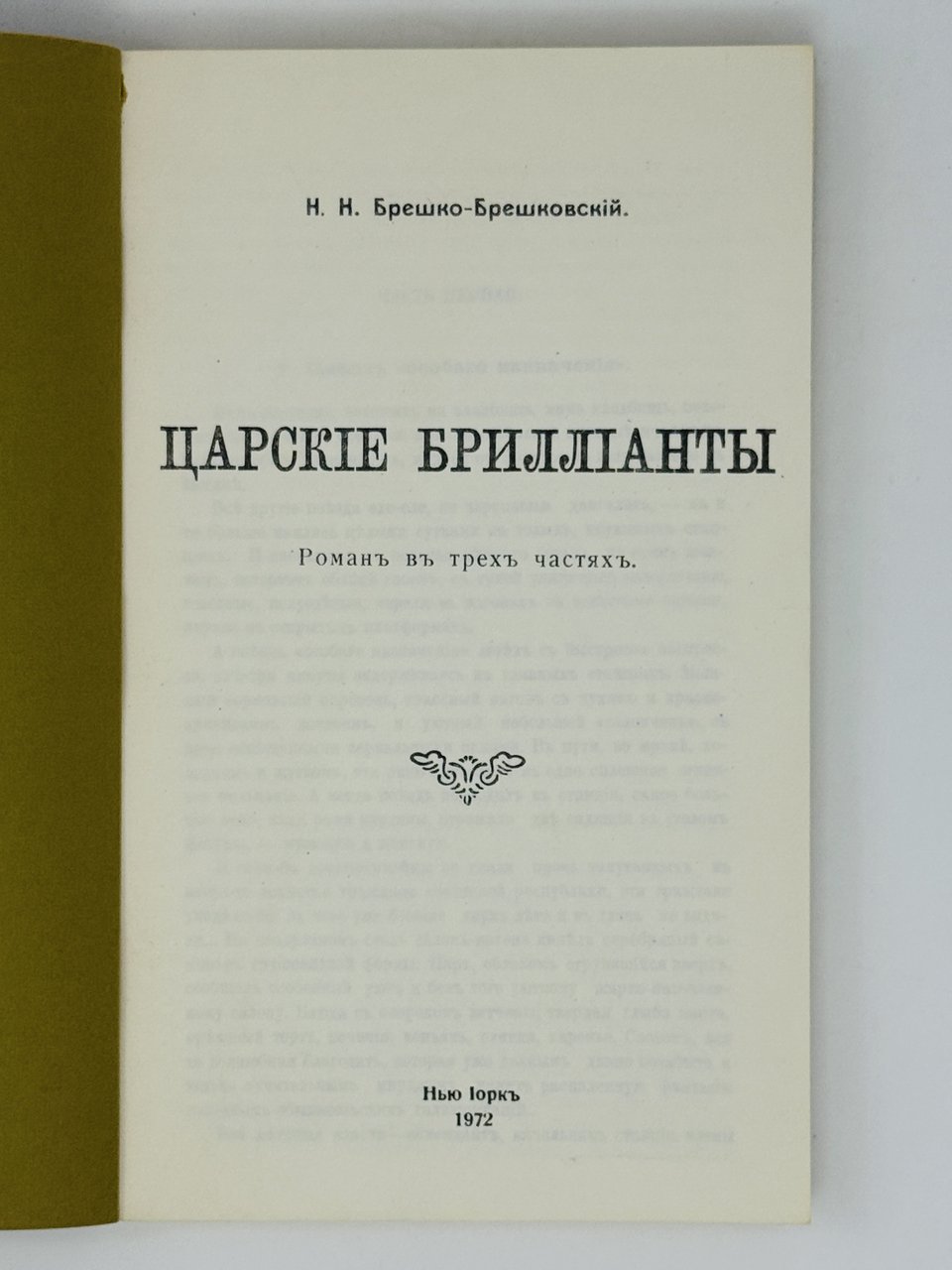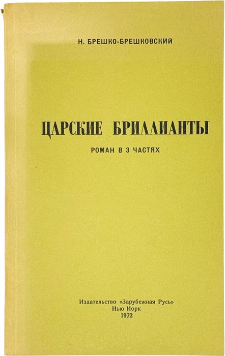 Брешко-Брешковский Н.Н. Царские бриллианты: Роман в трех частях. Нью-Йорк: Зарубежная Русь, 1972. 254 с. 22х14 см.
