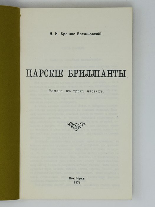 Брешко-Брешковский Н.Н. Царские бриллианты: Роман в трех частях. Нью-Йорк: Зарубежная Русь, 1972.