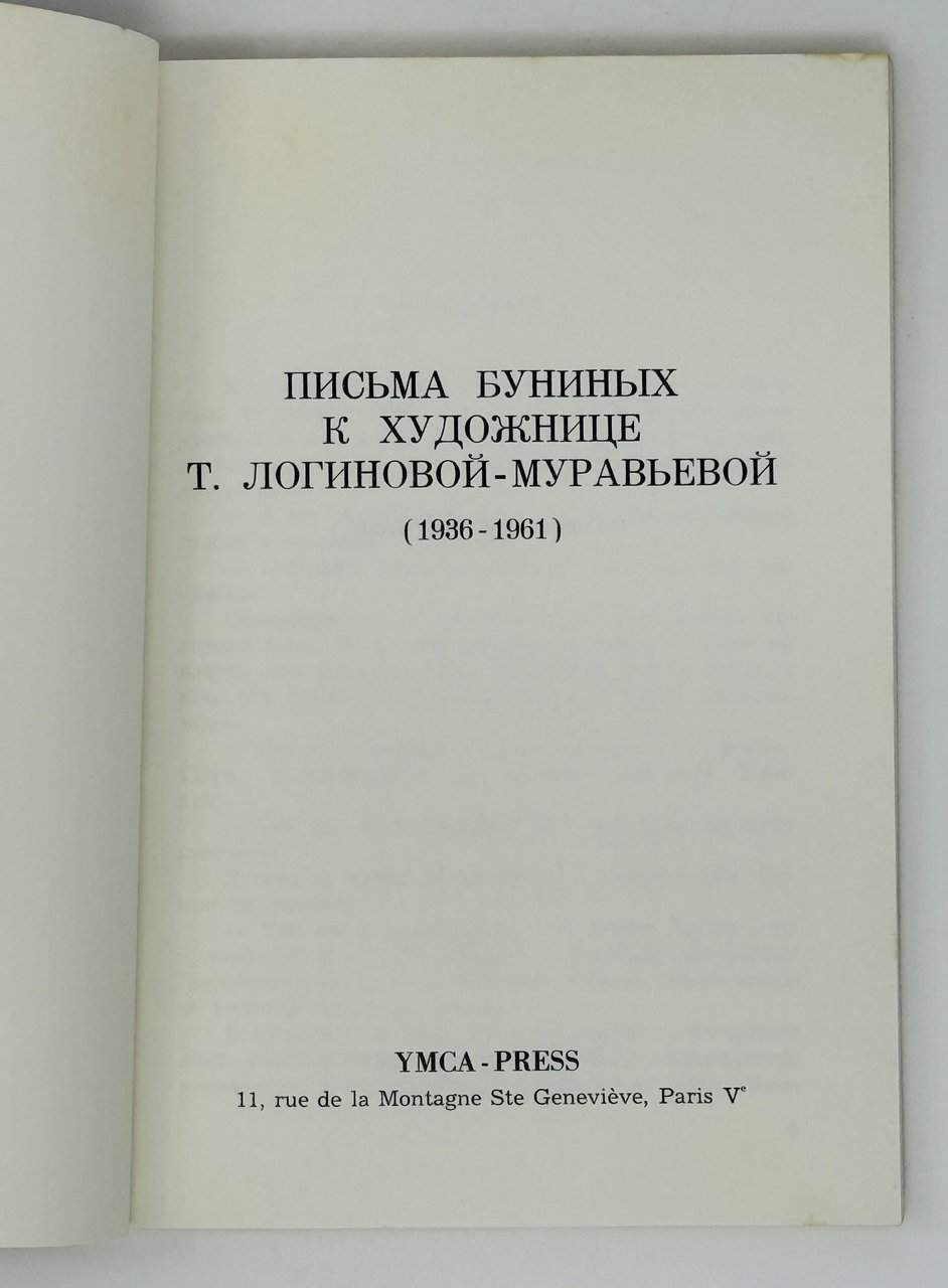 [Бунин И. Бунина В.] Письма Буниных к художнице Т. Логиновой-Муравьевой. (1936-1961). Париж: YMCA-Рress, 1982.