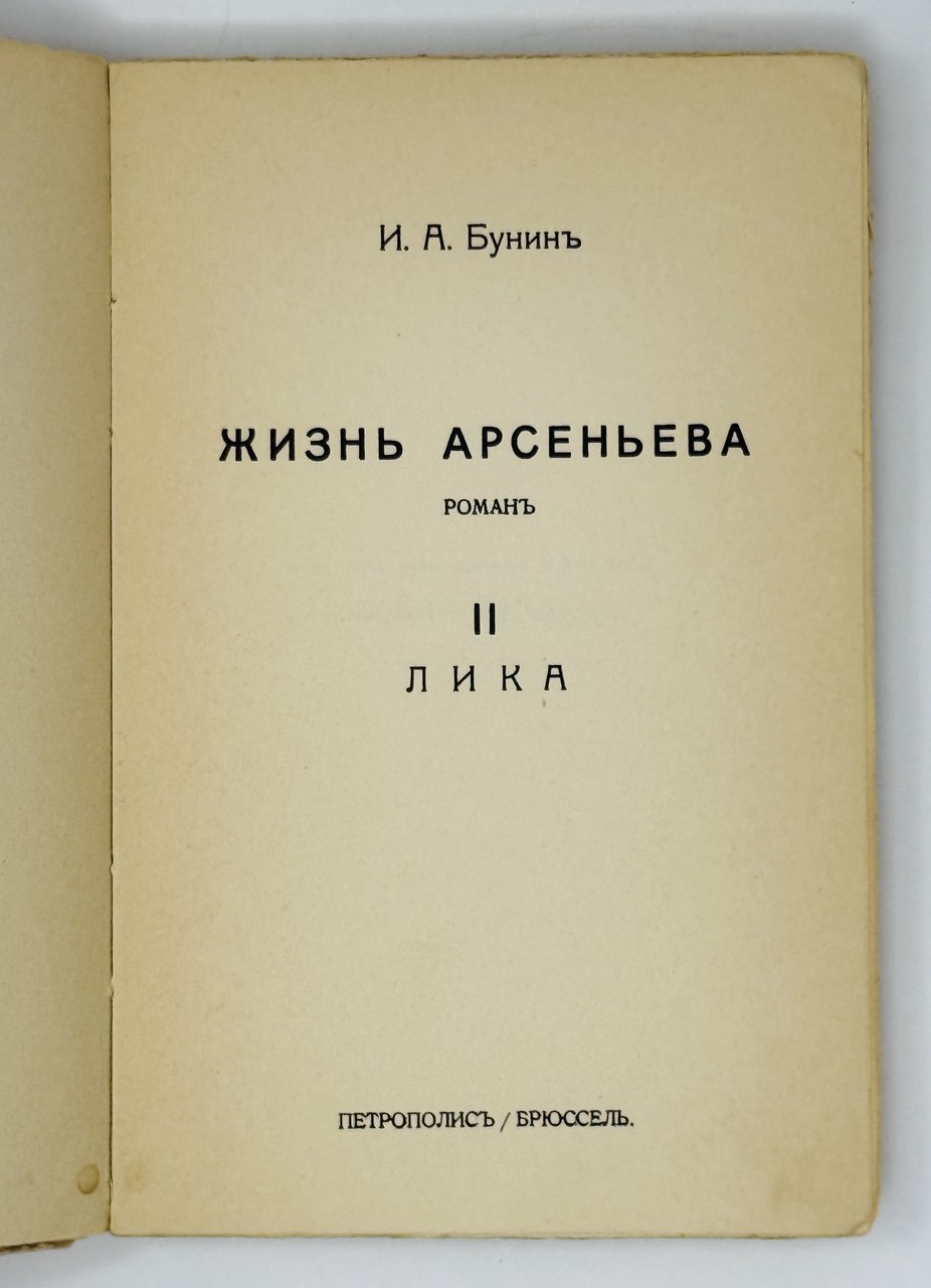 Бунин И. Жизнь Арсеньева. Роман. Ч.2. Лика. Брюссель: Петрополис, 1939. 170 с. В шрифтовой издательской обложке.