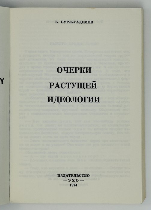 Буржуадемов К. Очерки растущей идеологии. Мюнхен: Эхо, 1974.