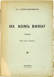 Лаппо-Данилевская Н.А. На ком вина? Роман. III-я часть «Развала». Берлин: Presse, 1922.