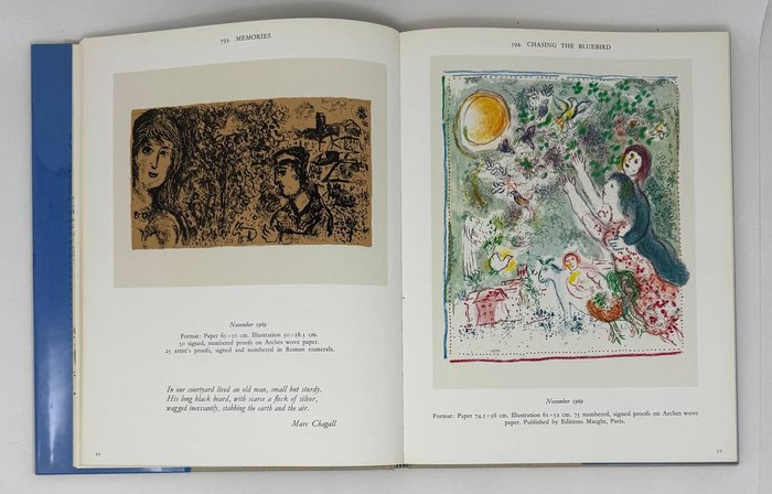 Богато иллюстрированное издание: 134 полностраничных цветных отпечатков и 27 черно-белых репродукций. Эта работа, выпущенная Les Editions Андре Соре и Шарлем Сорлье, была напечатана в августе 1974 года. Репродукции были напечатаны на печатных станках Les Imprimeries Reunies в Лозанне, а оригинальные литографии — на печатных станках Mourlot в Париже.