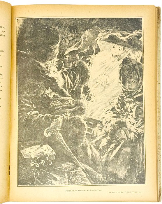 В картонажном издательском переплете с цветным художественным тиснением по передней крышке. Потертости и загрязнения переплета, уголки слегка сбиты, ткань корешка надорвана, лисьи пятна на форзацах и крайних страницах, выгорание страниц. В остальном в очень хорошем состоянии, блок чистый. Дарственная надпись на обороте фронтисписа: “Милому дорогому, славному и доброму внуку Вовочке Варакину в день Ангела из далекой Маньчжурии от старого дедушки Миланова”.
