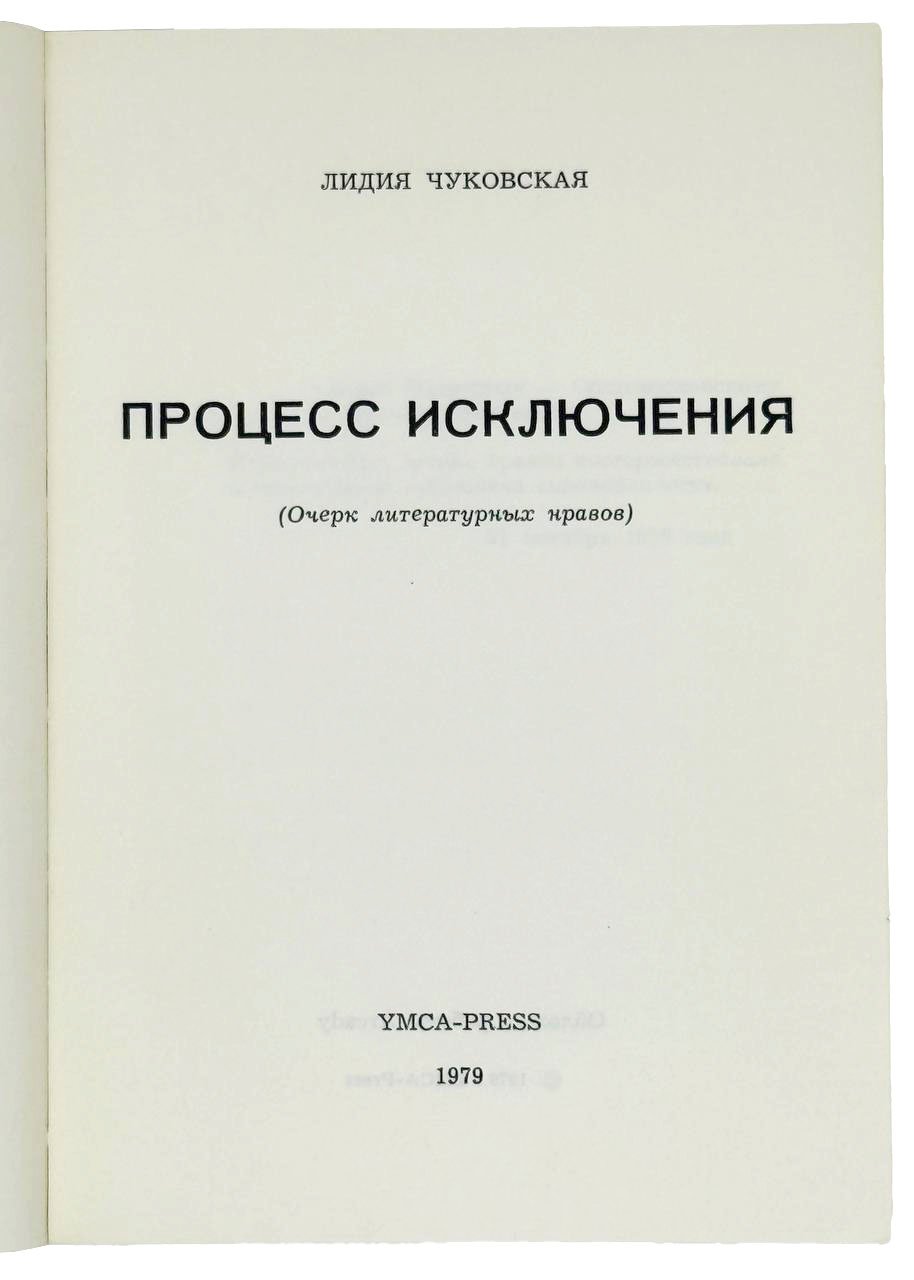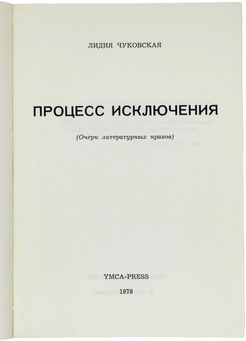 Чуковская Л. Процесс исключения: (Очерк литературных нравов). Париж: YMCA-Рress, 1979. 208 с. 18,5х13 см.
