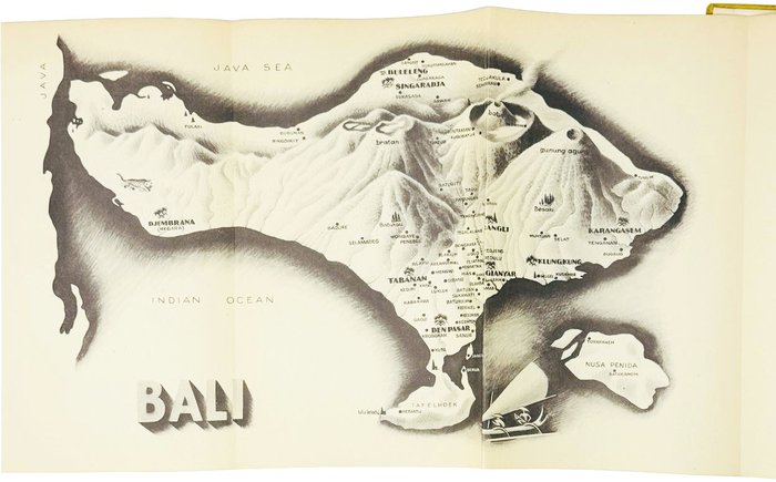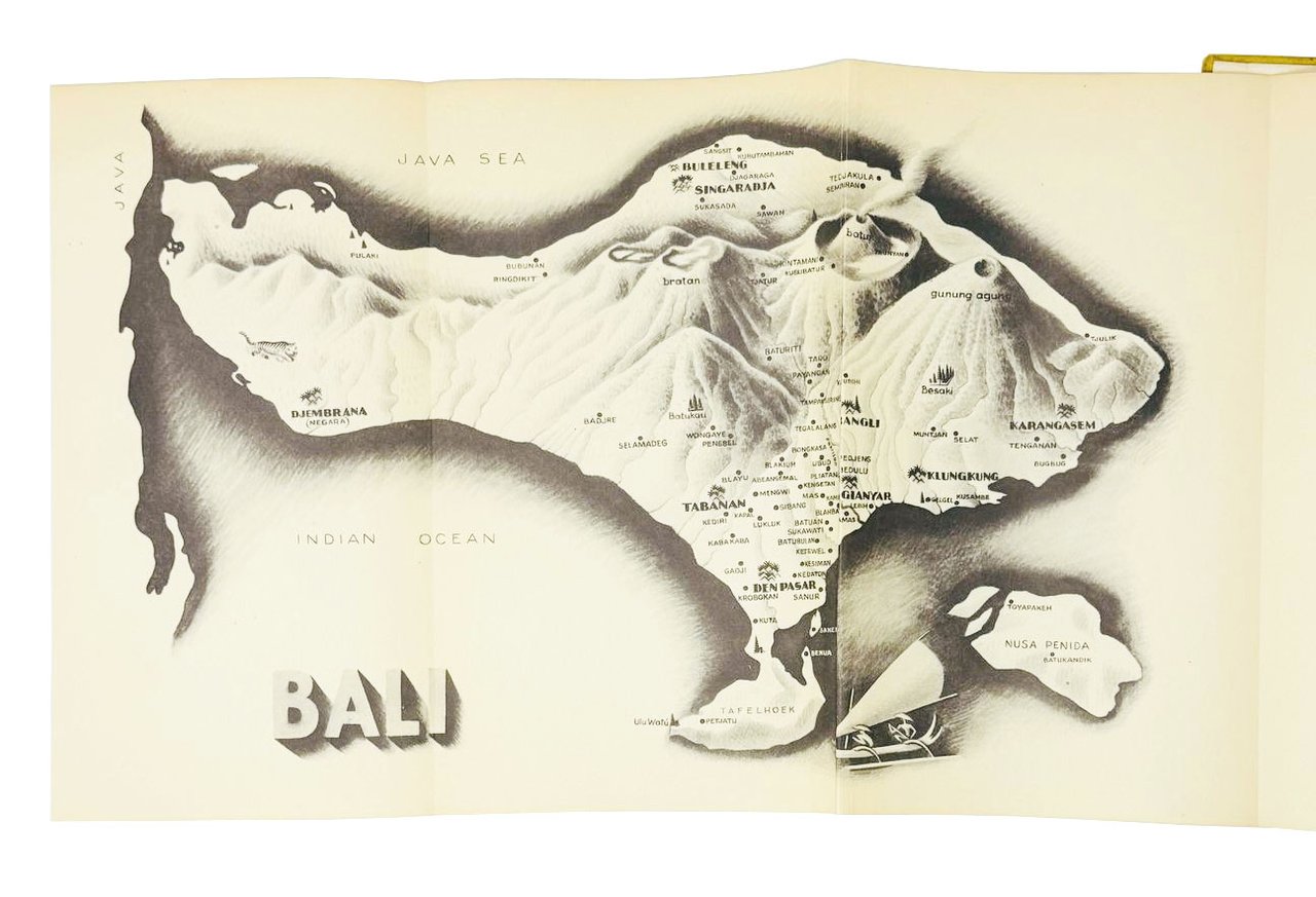[Коваррубиас М. Остров Бали] Covarrubias M. Island of Bali. New York: Alfred A. Knopf, 1938. [2], XXV, 417, X, [1] с.: ил., 1 л. фронт., 1 л. карт., 50 л. ил. В составном иллюстрированном издательском переплете, утрата суперобложки. Потертости и небольшие загрязнения переплета, лист с картой подклеен на стыке. Блок чистый, в очень хорошем состоянии.