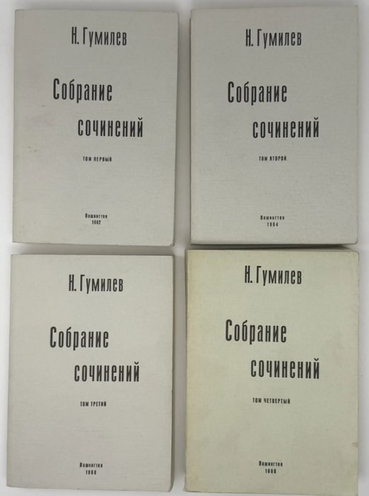 Гумилев Н. Собрание сочинений в четырех томах. Т. 1-4 [Комплект]. Вашингтон: V. Kamkin, 1962-1968.