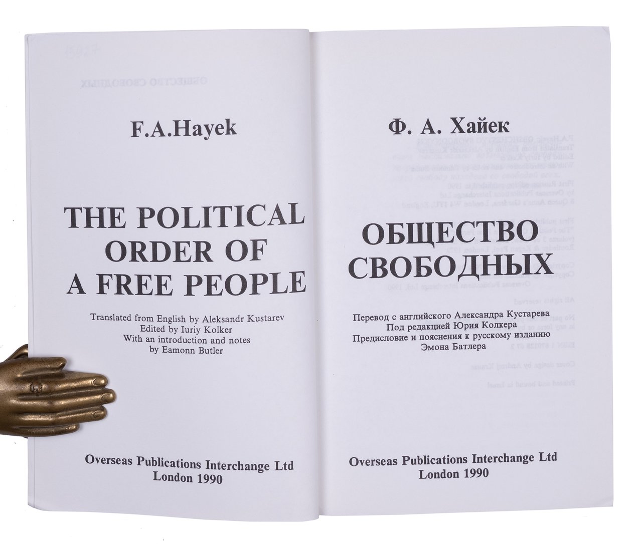 Хайек Ф.А. Общество свободных. Лондон: OPI, 1990. 309 с. 18,5х12 см.