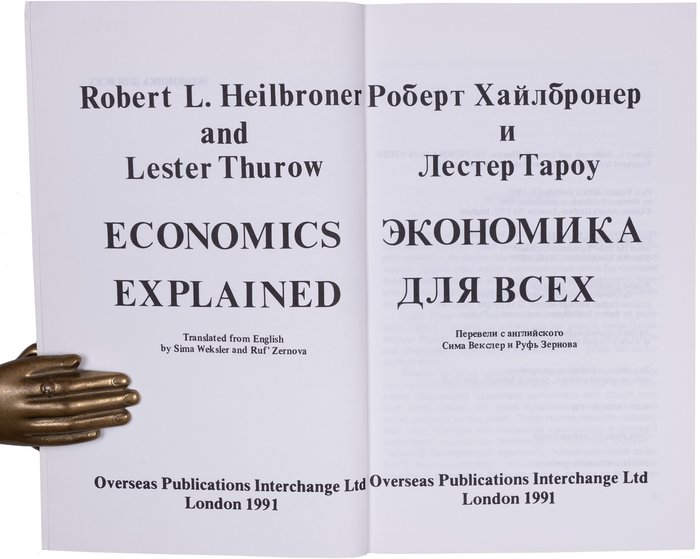 Хайлбронер Р. Тароу Л. Экономика для всех / Пер. с англ. С. Векслер и Р. Зернова. Лондон: OPI, 1991. 336 с. 18,5х12 см.