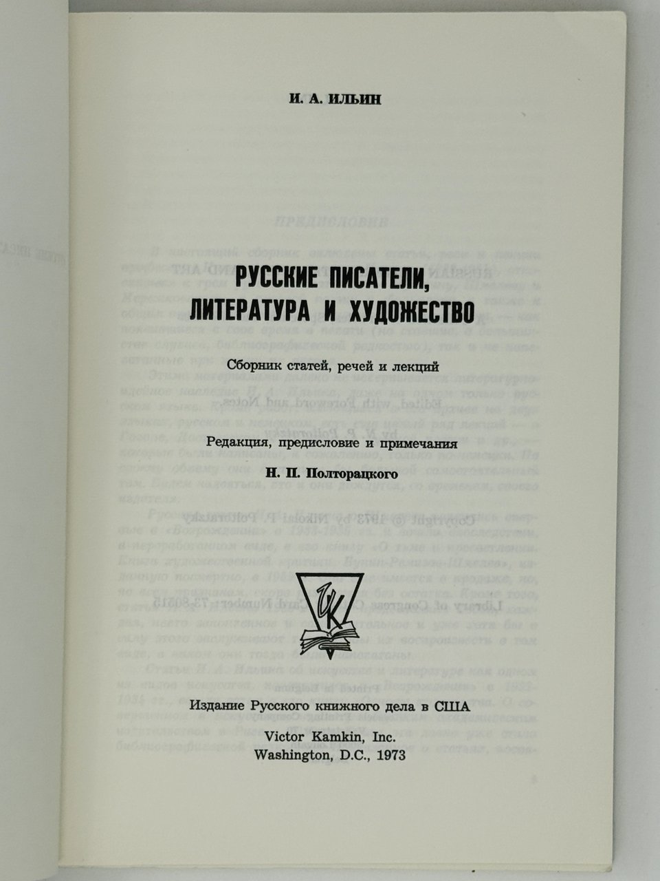 Ильин И.А. Русские писатели, литература и художество. Вашингтон: V. Kamkin, 1973.