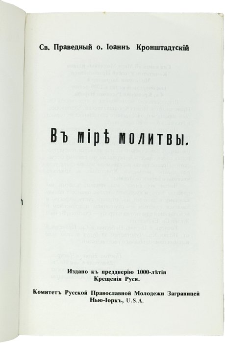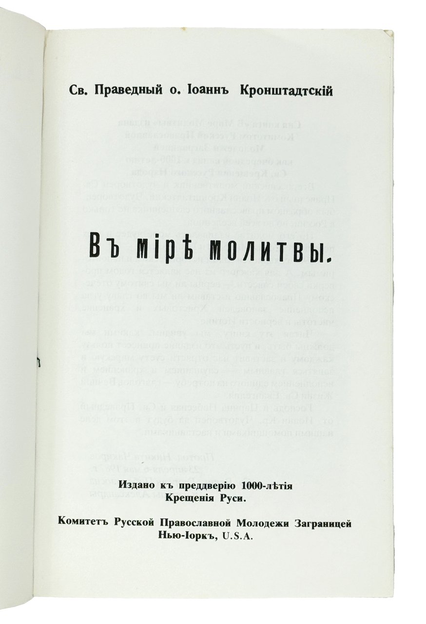 Иоанн Кронштадтский. В мире молитвы. Нью-Йорк: Комитет Русской Православной Молодёжи Заграницей, 1988. 205 с.: ил. 22,5х15 см.