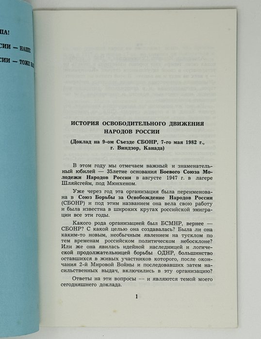 История Освободительного Движения Народов России / 9-й Съезд Союза Борьбы за Освобождение Народов России:. Сан-Франциско: Globus Publishers, 1982. 40 с. В издательской обложке.