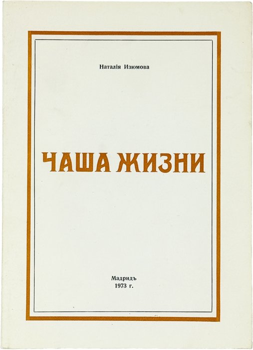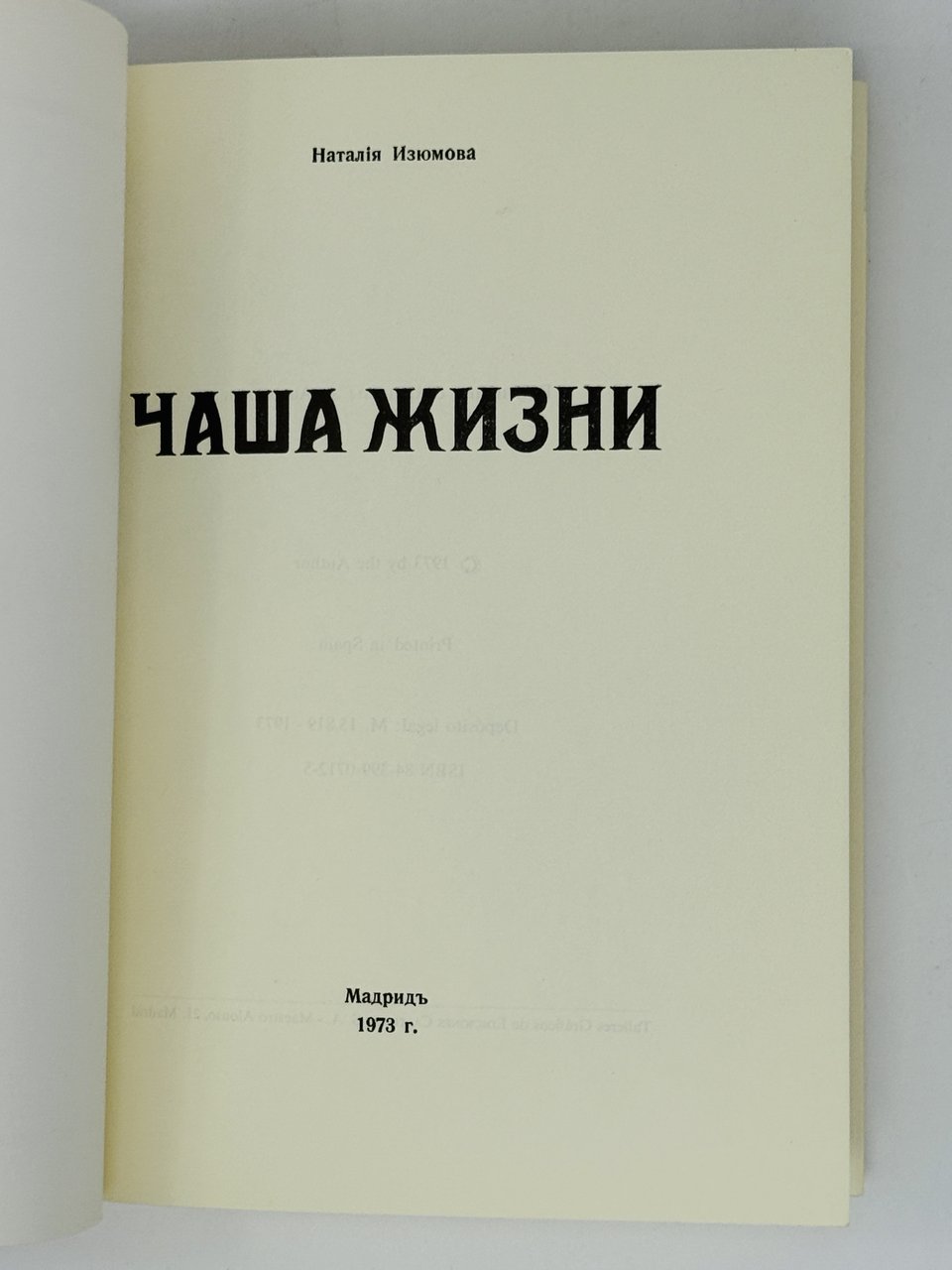 Изюмова Н. Чаша жизни. Мадрид: 1973. 160 с.: ил. ISBN: 8439907125. В шрифтовой издательской обложке.