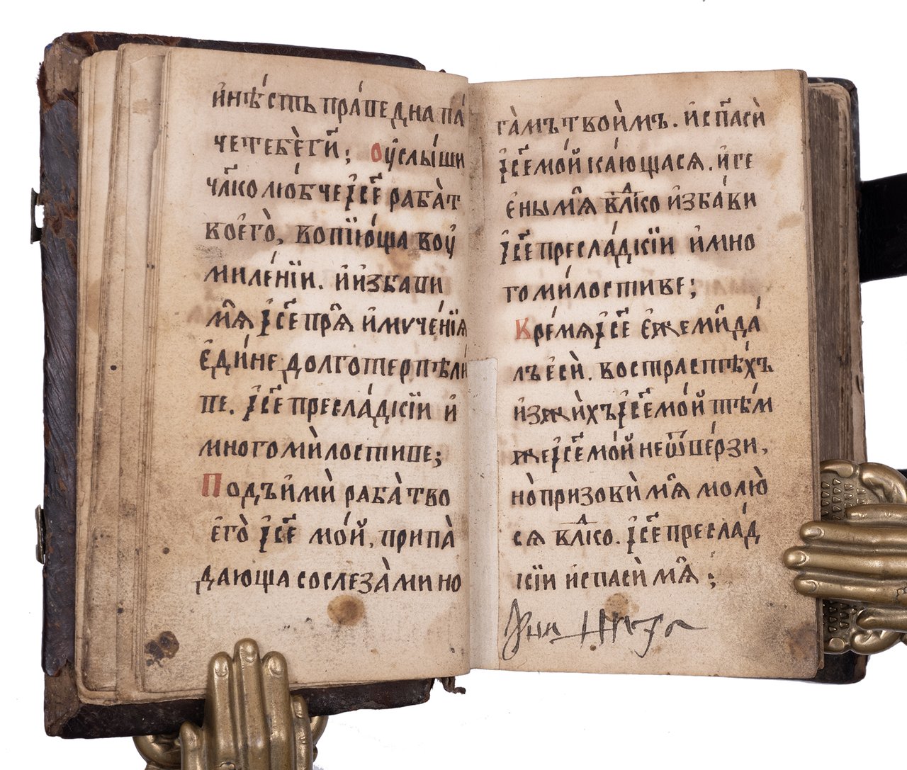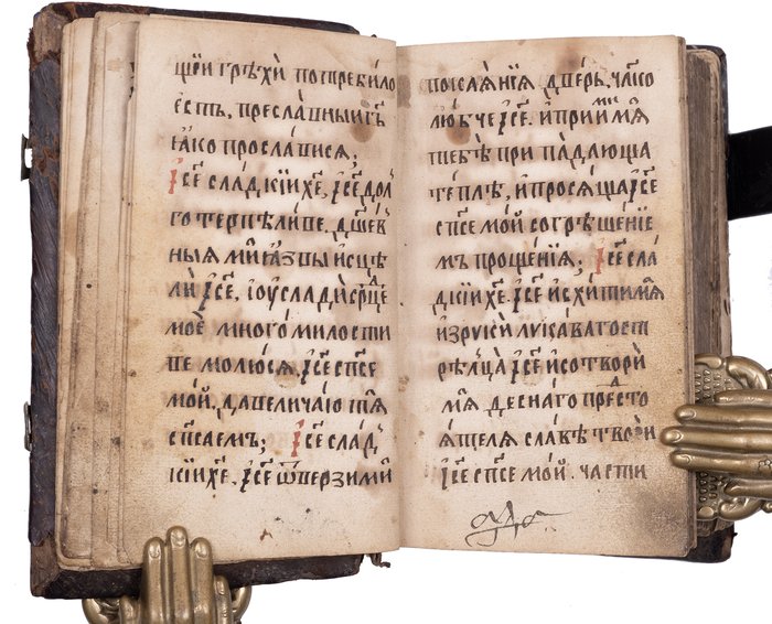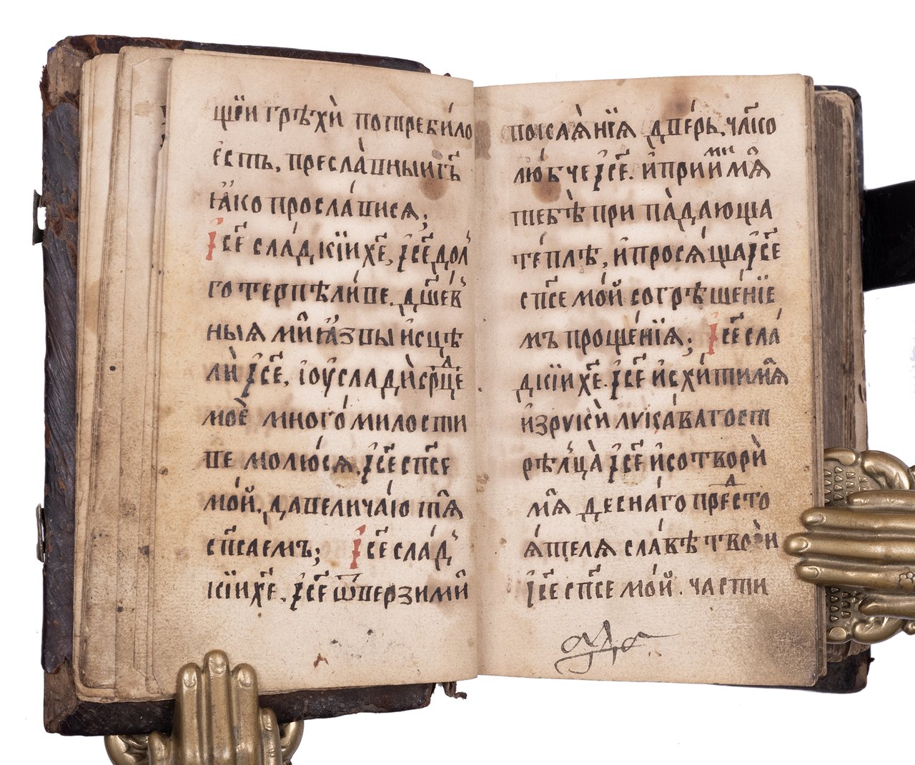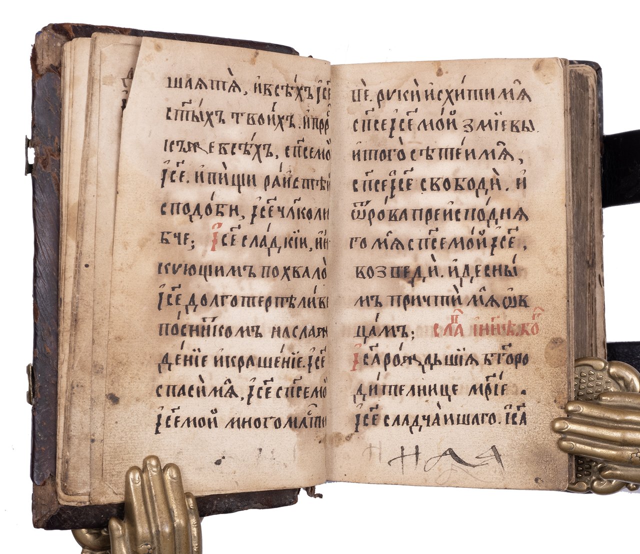 Канонник. Рукопись. [1650]. 445 л. 16х10,5 см. В кожаном переплете эпохи.