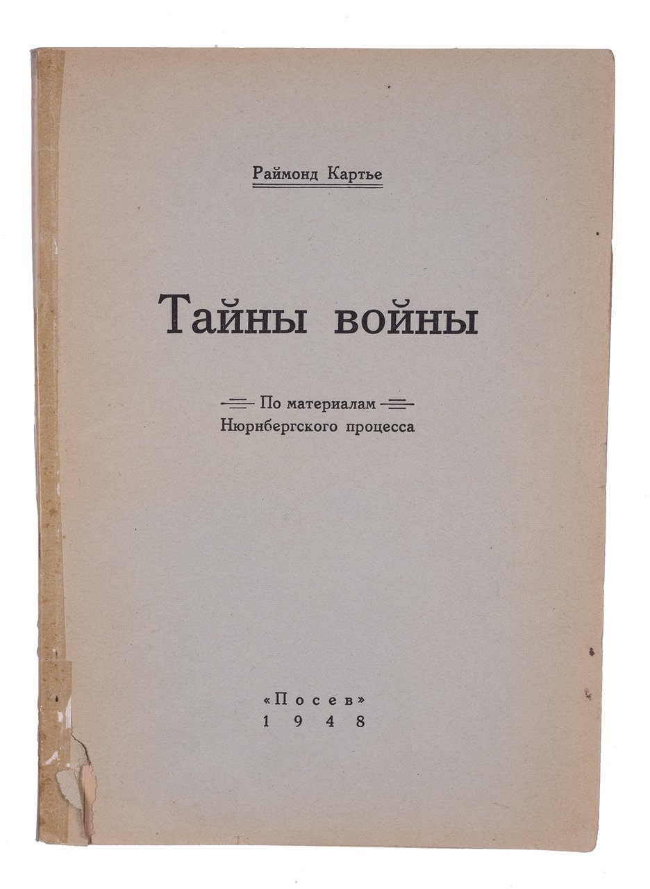 Картье Р. Тайны войны: По материалам Нюрнбергского процесса. Франкфурт-на-Майне: Посев, 1948. 148 с. 21х15 см.