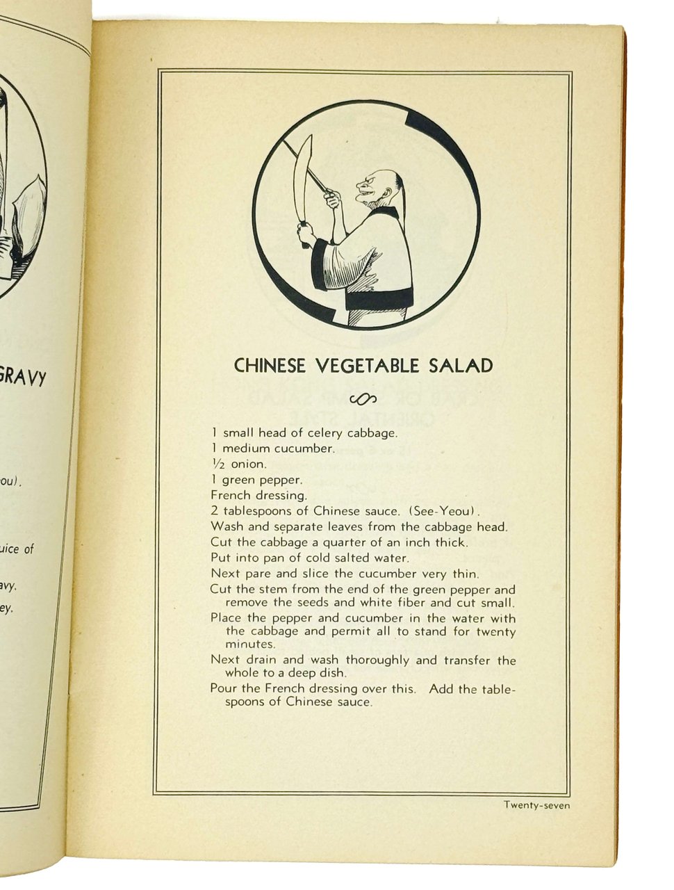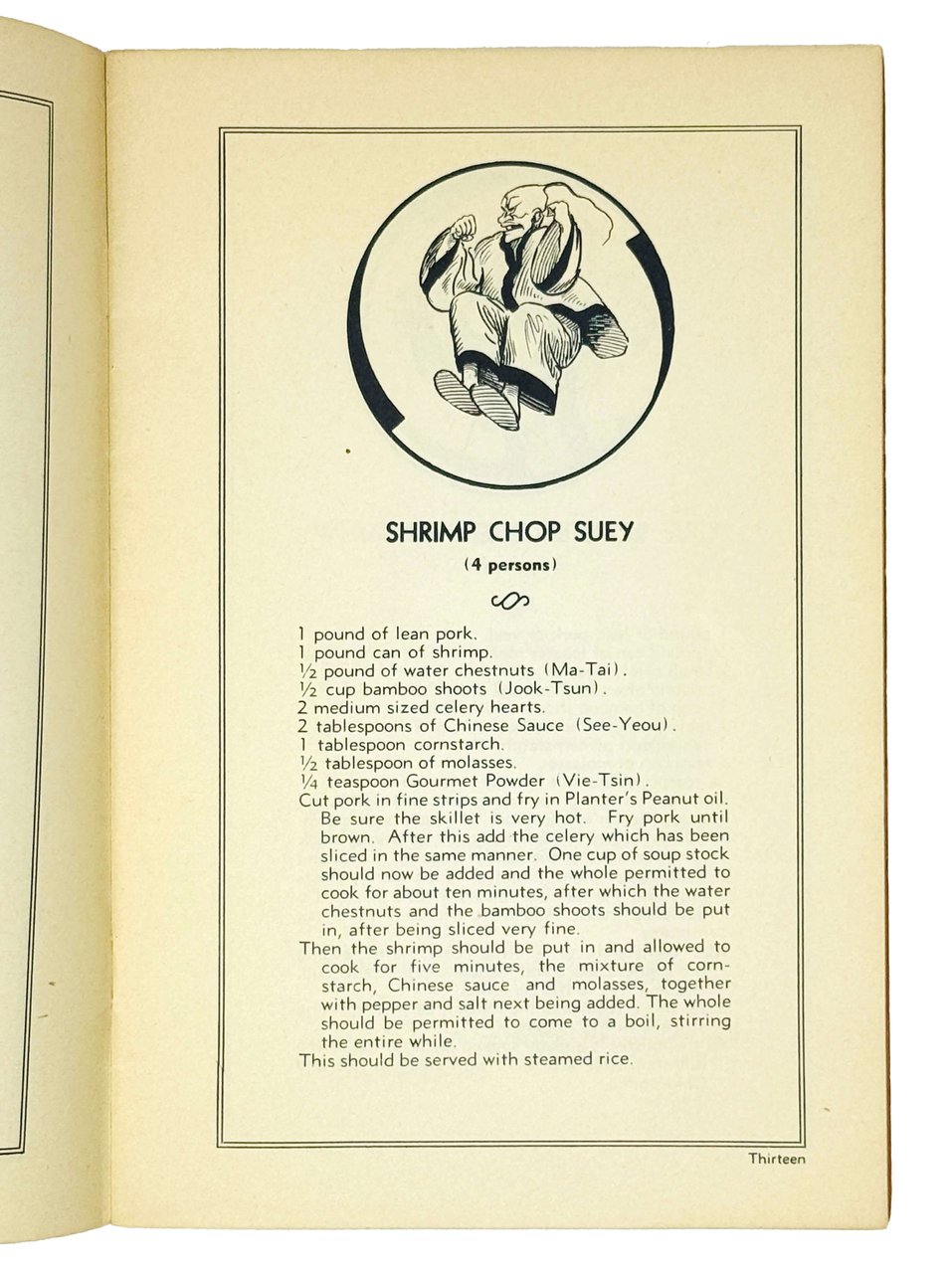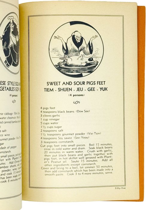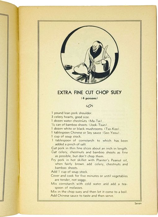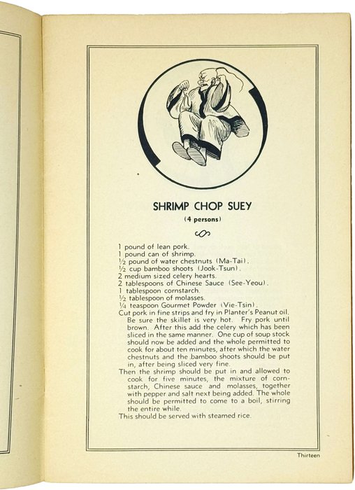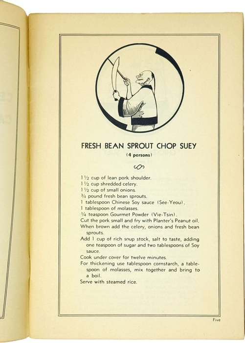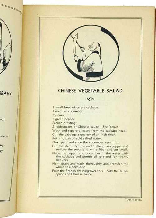 Книга содержит более пятидесяти рецептов китайских блюд, включая различные виды лапши, салаты, супы, целые меню по дням недели и т.д. Страницы иллюстрированы карикатурными изображениями китайцев. Хотя китайская кухня в середине XX века уже начала получать международное признание, в США и Европе она по-прежнему оставалась в разряде экзотики и подобные сборники рецептов только начали получать распространение.