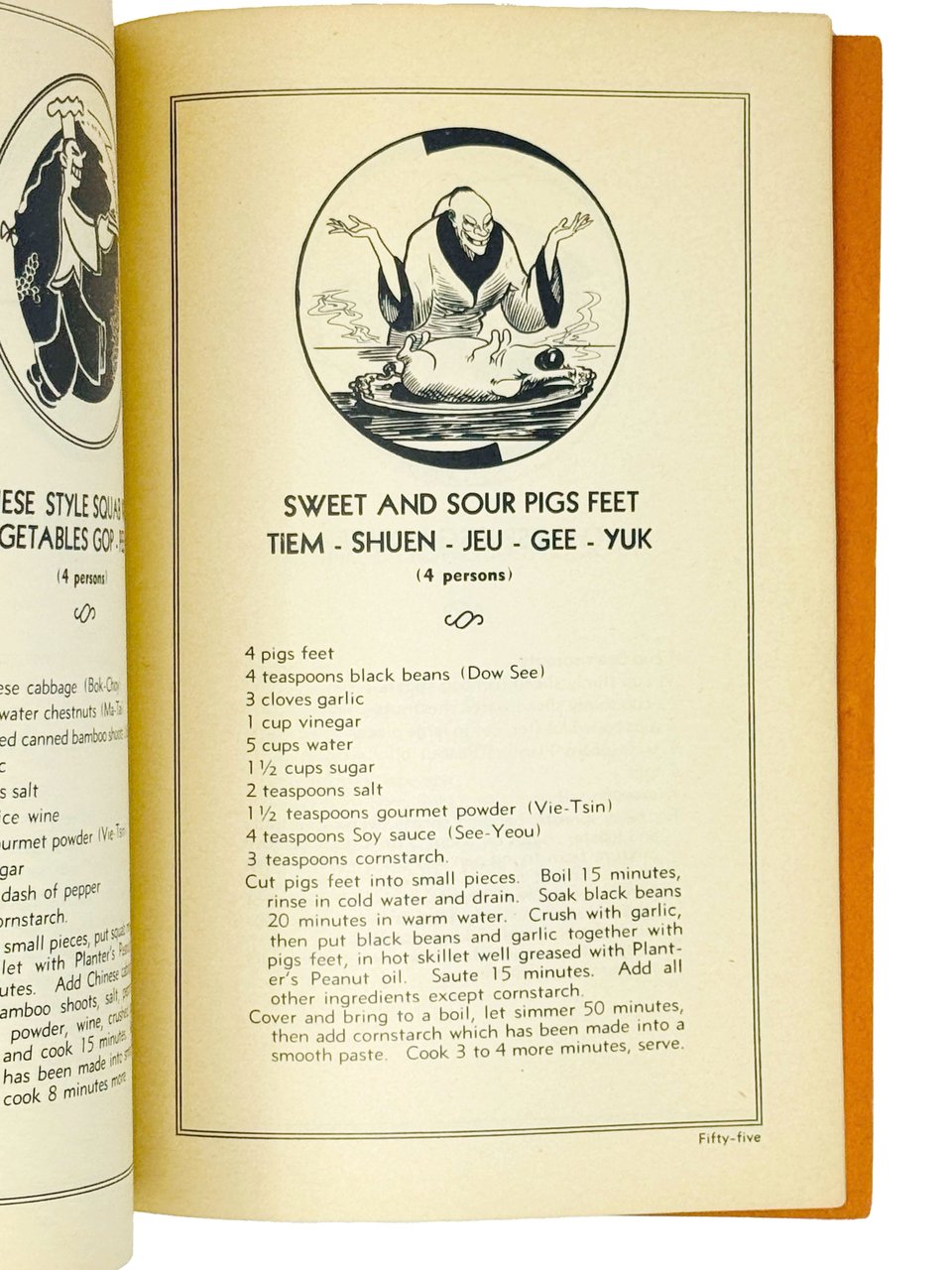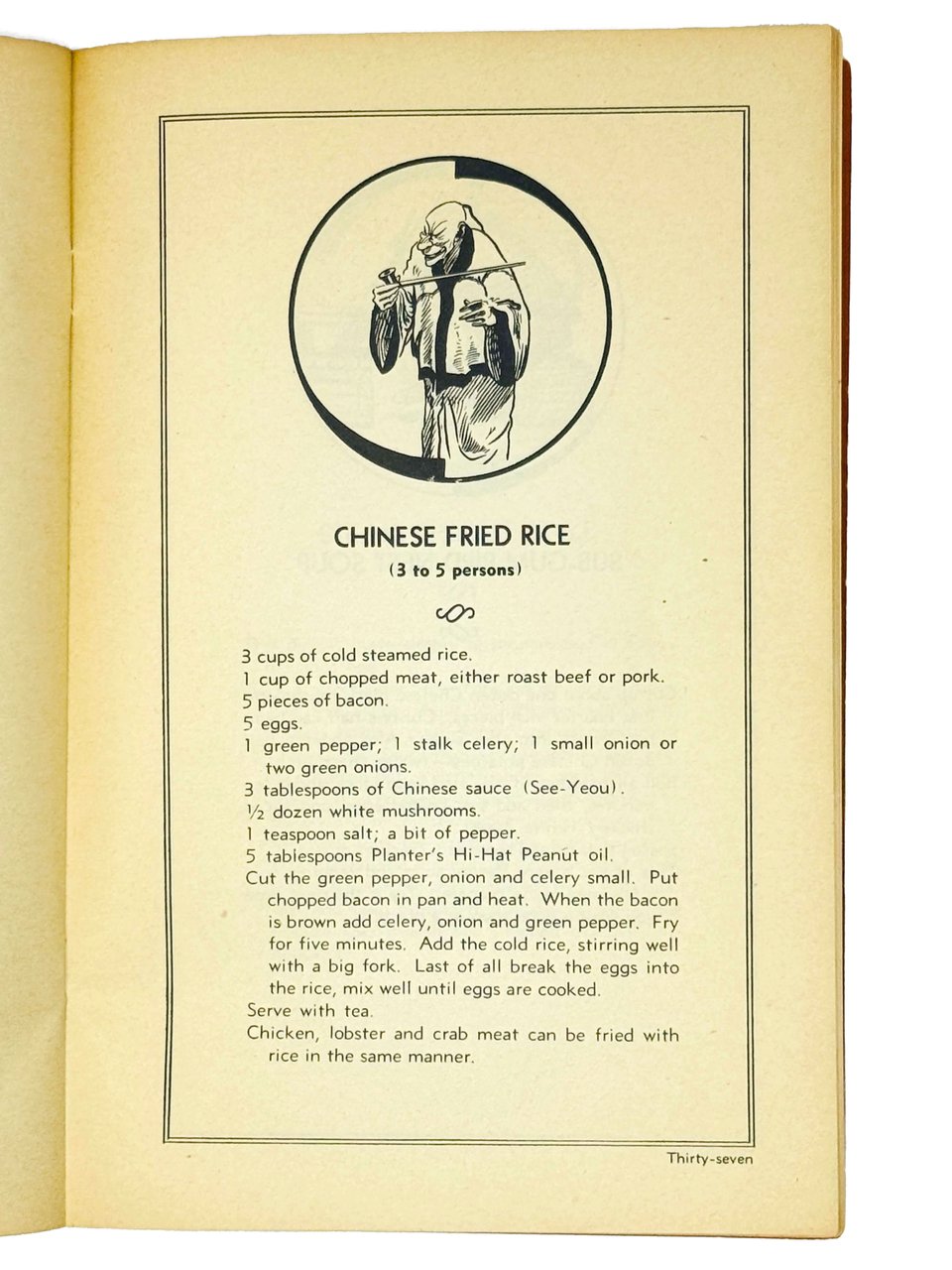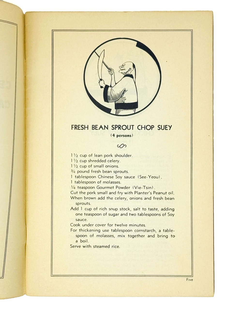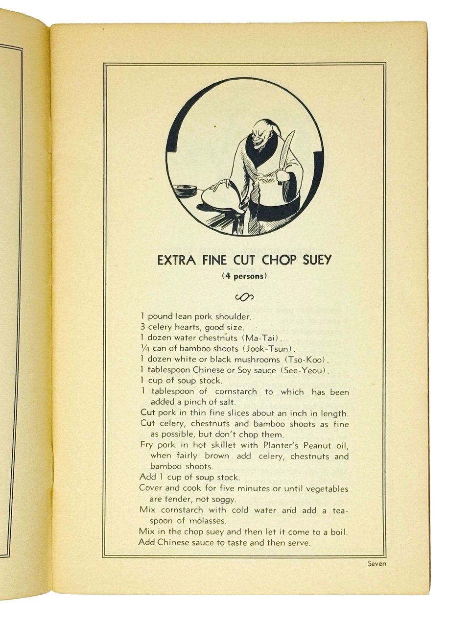 Книга содержит более пятидесяти рецептов китайских блюд, включая различные виды лапши, салаты, супы, целые меню по дням недели и т.д. Страницы иллюстрированы карикатурными изображениями китайцев. Хотя китайская кухня в середине XX века уже начала получать международное признание, в США и Европе она по-прежнему оставалась в разряде экзотики и подобные сборники рецептов только начали получать распространение.