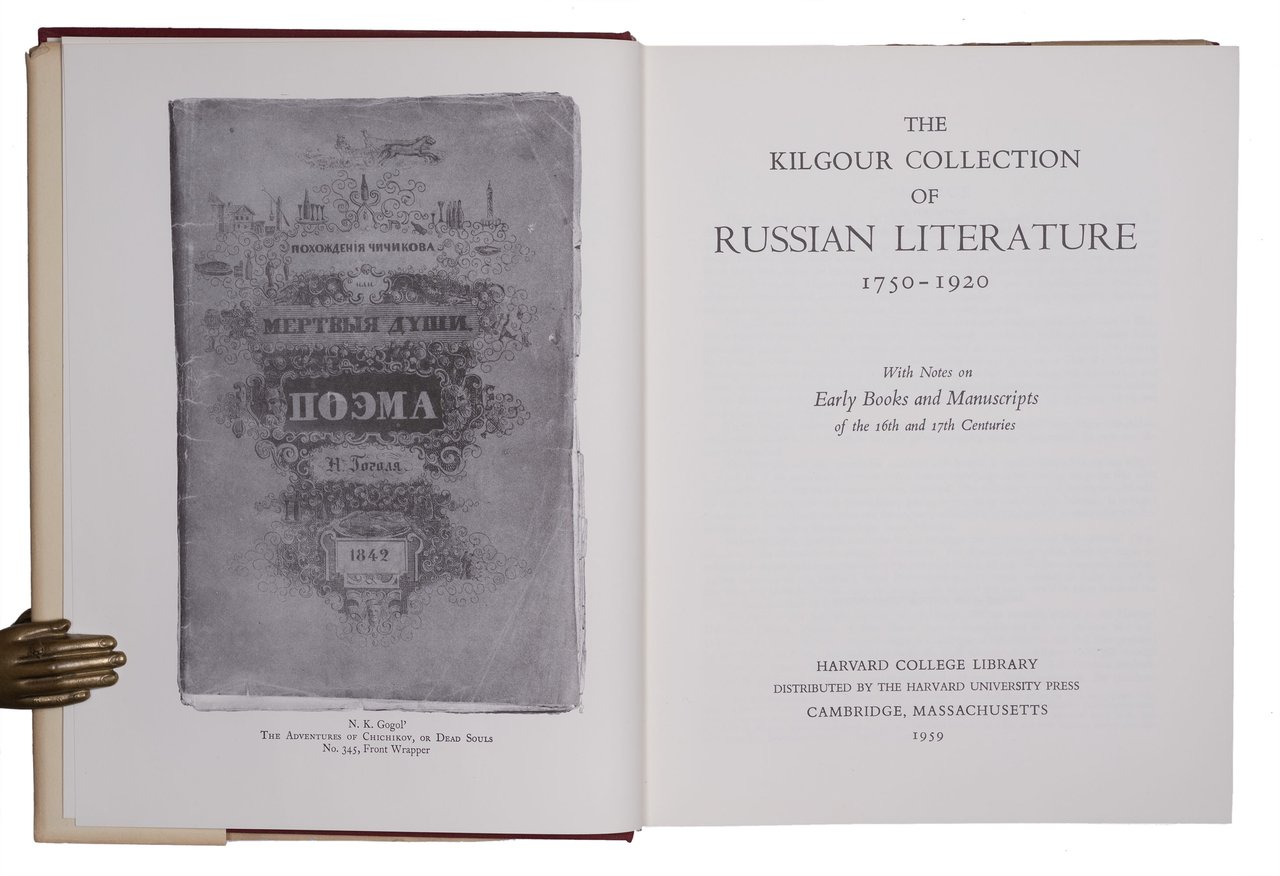 Коллекция русской литературы 1750-1920 Б.Л. Килгура. С примечаниями о ранних книгах и рукописях XVI и XVII веков: Каталог. [The Kilgour collection of russian literature 1750-1920: With notes on early books and manuscripts of the 16th and 17th centuries]. Кембридж: Harvard college library, 1959. [598] с.: ил.; 28,5х22,3 см.