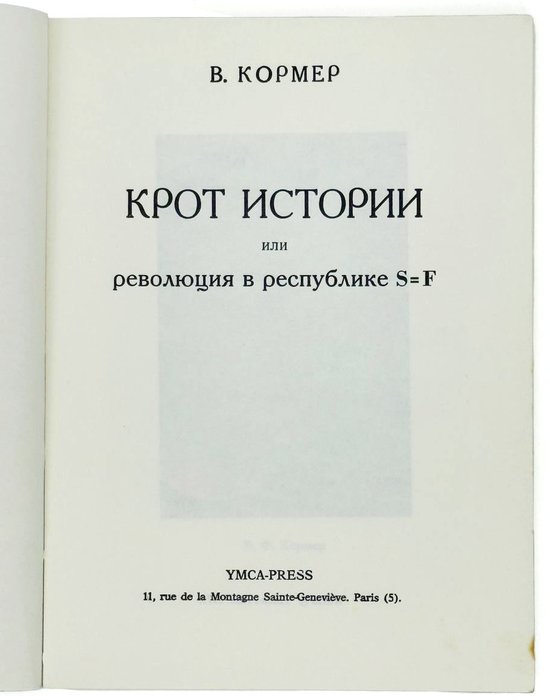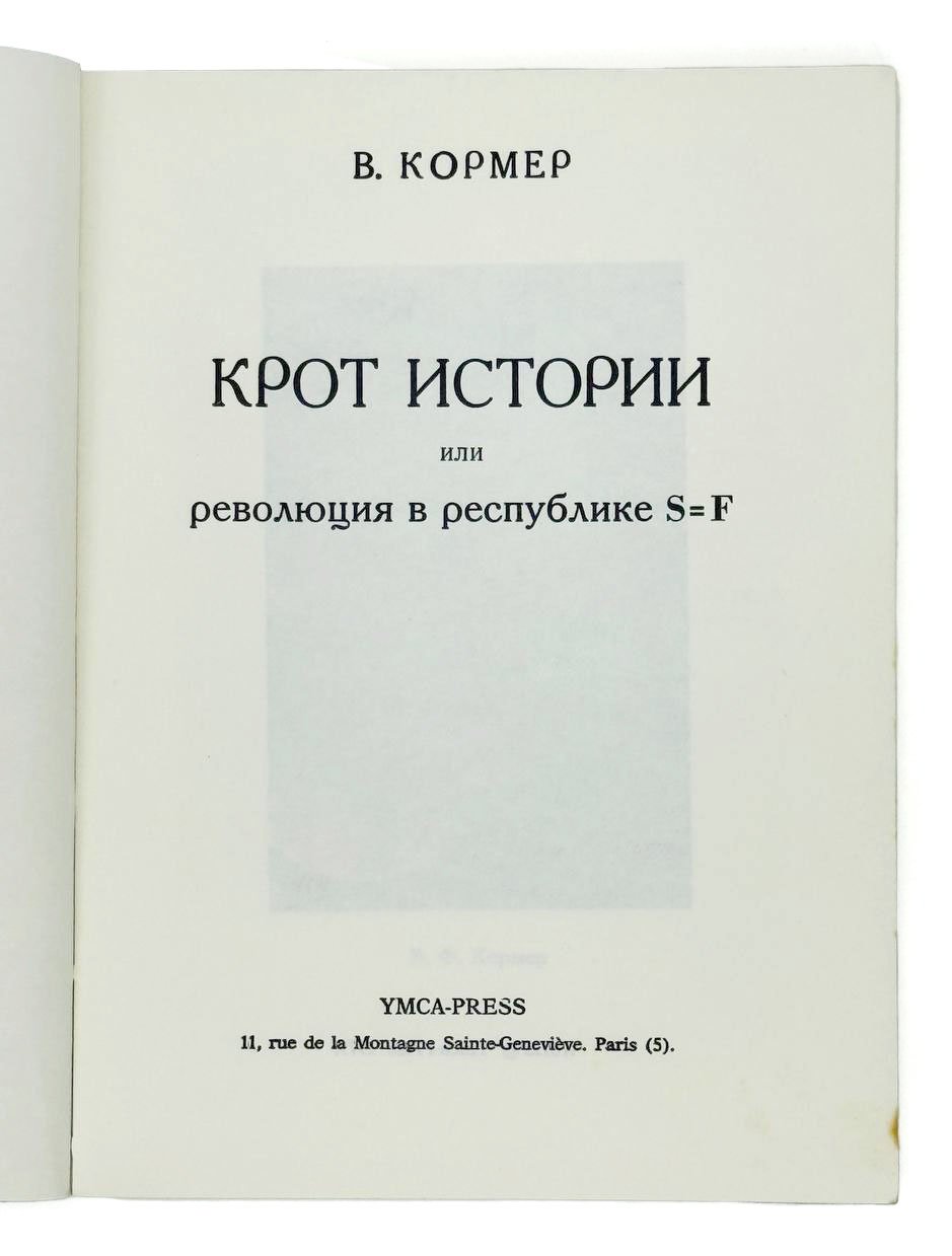Кормер В. Крот истории, или Революция в республике S=F. Париж: YMCA-Рress, 1979. 187 с.: портр. 18,5х13,5 см.