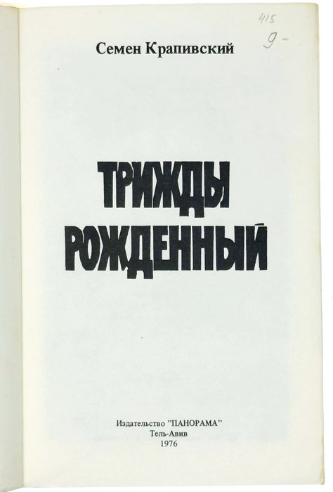 Крапивский С. Трижды рожденный. Тель-Авив: Панорама, 1976. 286 с.: портр. 20х13,5 см.