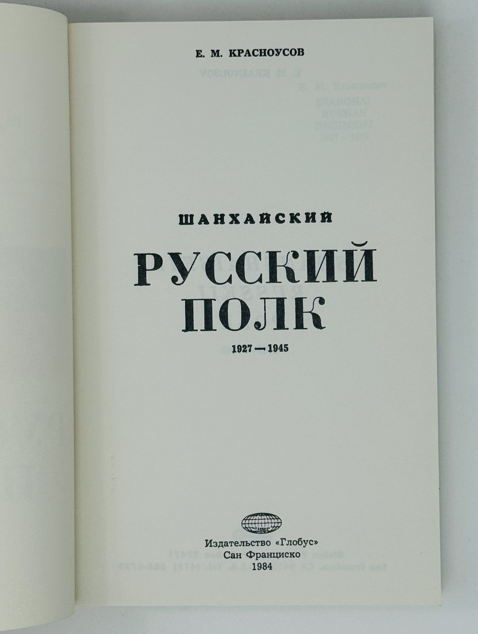 Красноусов Е. Шанхайский русский полк. 1927-1945. Сан-Франциско: Globus Publishers, 1984. 368 с.: ил. 21х13,5 см.