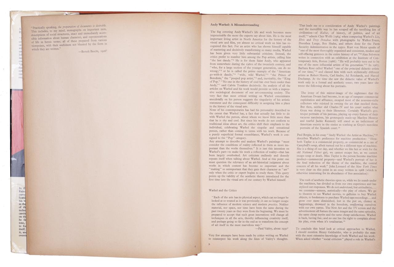 Прекрасный экземпляр классической книги об Энди Уорхоле, которая также является первым каталогом-резоне, выпущенным по его работам.