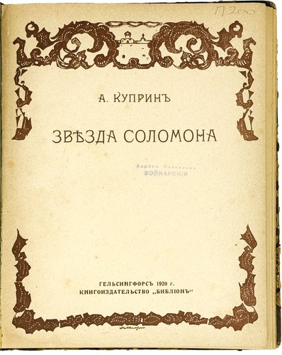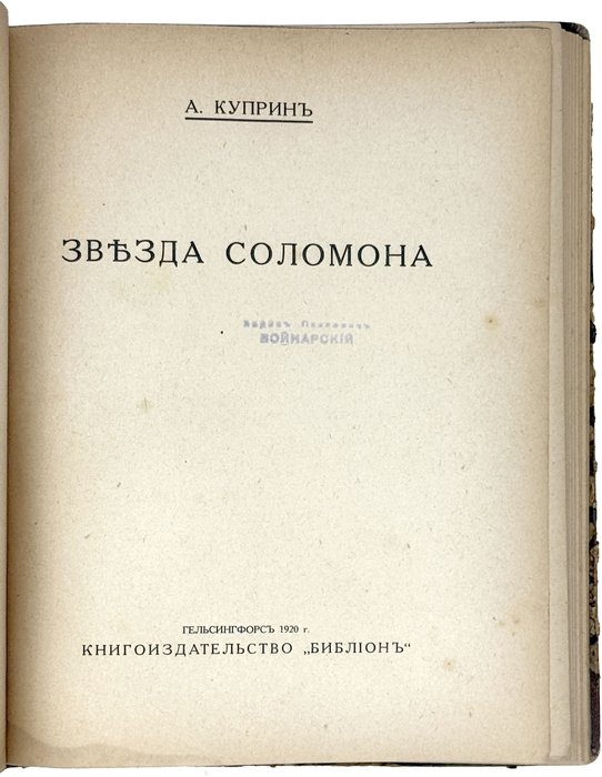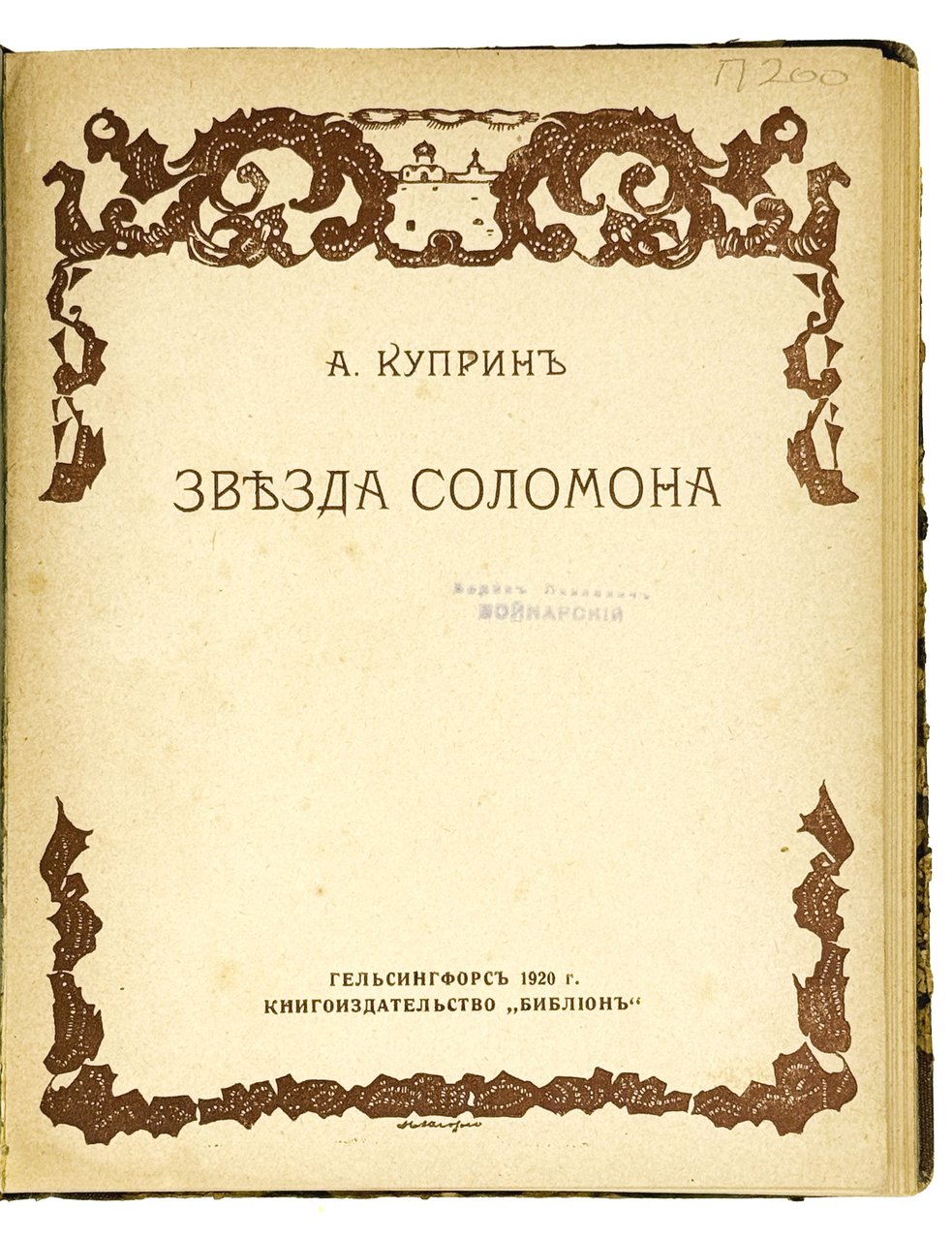 Куприн А. Звезда Соломона. Гельсингфорс: Библион, 1920.