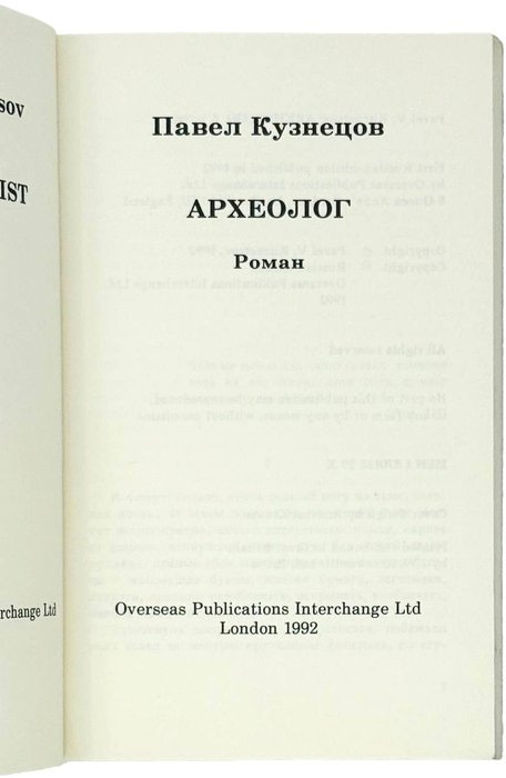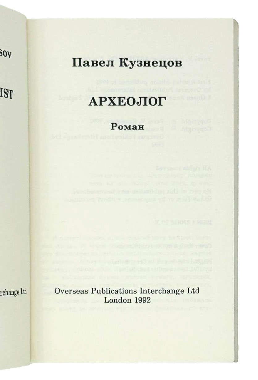 Кузнецов П. Археолог: Роман. Лондон: OPI, 1992. 173 с. 18,5х12 см.